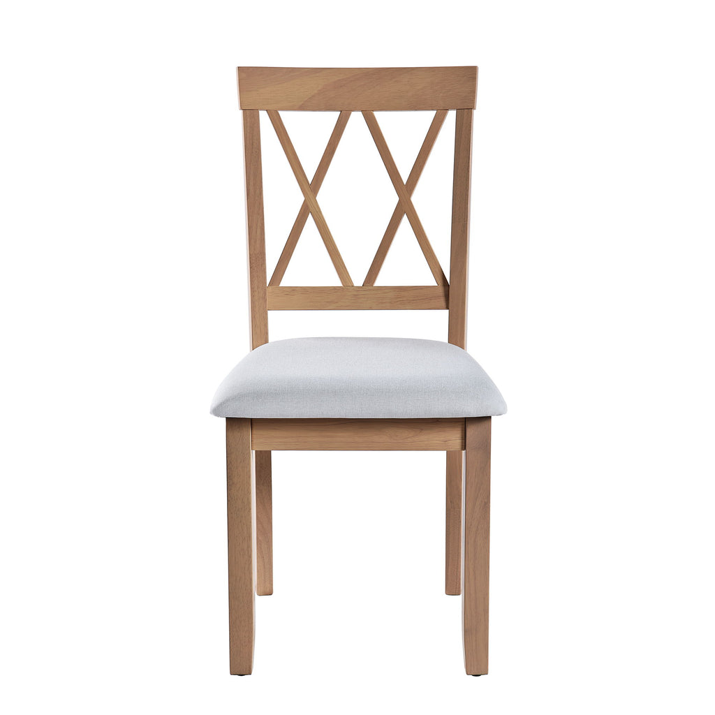 QUALITY CONSTRUCTION: This kitchen set is made of solid rubberwood legs and top veneer birch for durability. The dining table and X-back chairs have a minimalist silhouette to match all types of furniture, with a triangular base and a stretcher underneath the table for added stability.