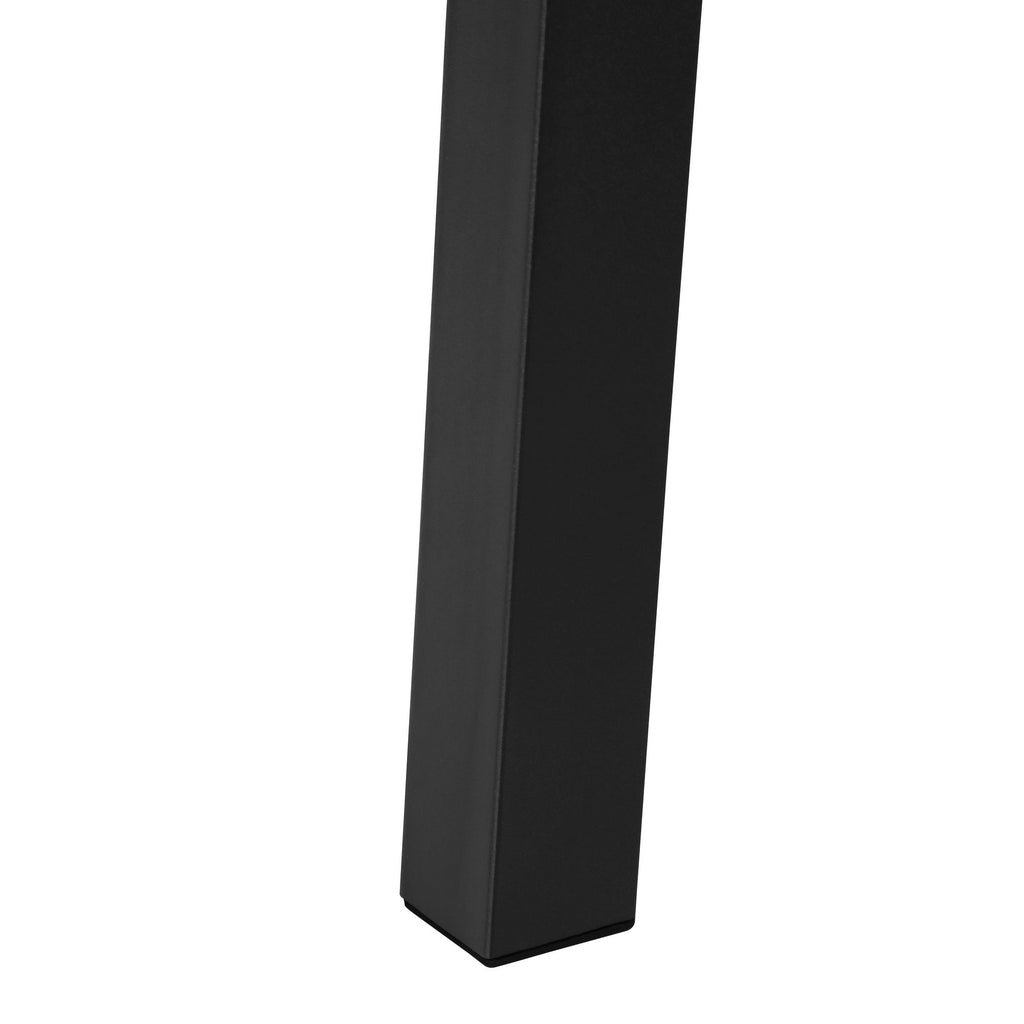 - Durable Construction: The set is crafted with a thick tabletop finished in a laminate wood-look, ensuring durability. The sturdy, angled table legs and ladder-back chairs are made of metal, providing both stability and a modern aesthetic.