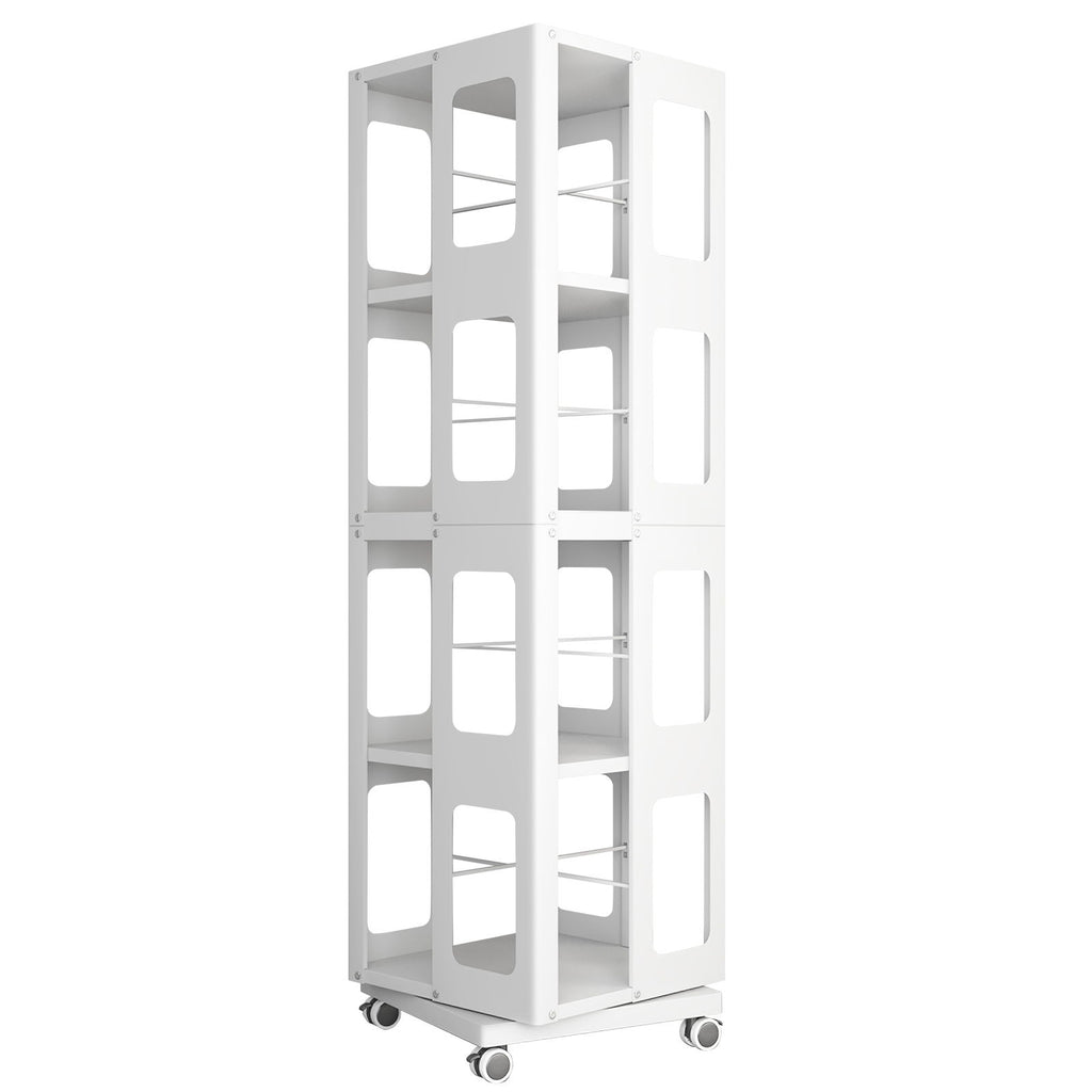 4 Tier All Steel Rotating Bookshelf With 360° Wheels, Large Size Sturdy & Spacious Book Rack, New Style Bookshelf - White