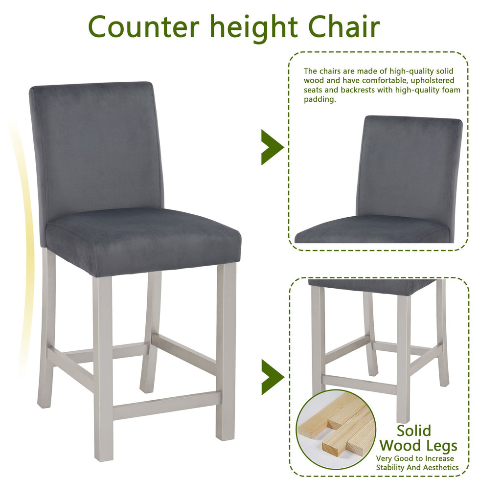 5 Pieces Counter Height Table Set, Wooden Kitchen Table Set With Square Table And 4 Upholstered Chairs - Silver Gray