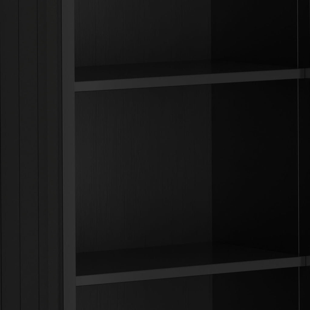 - Features four adjustable shelves for versatile storage and fixed shelf