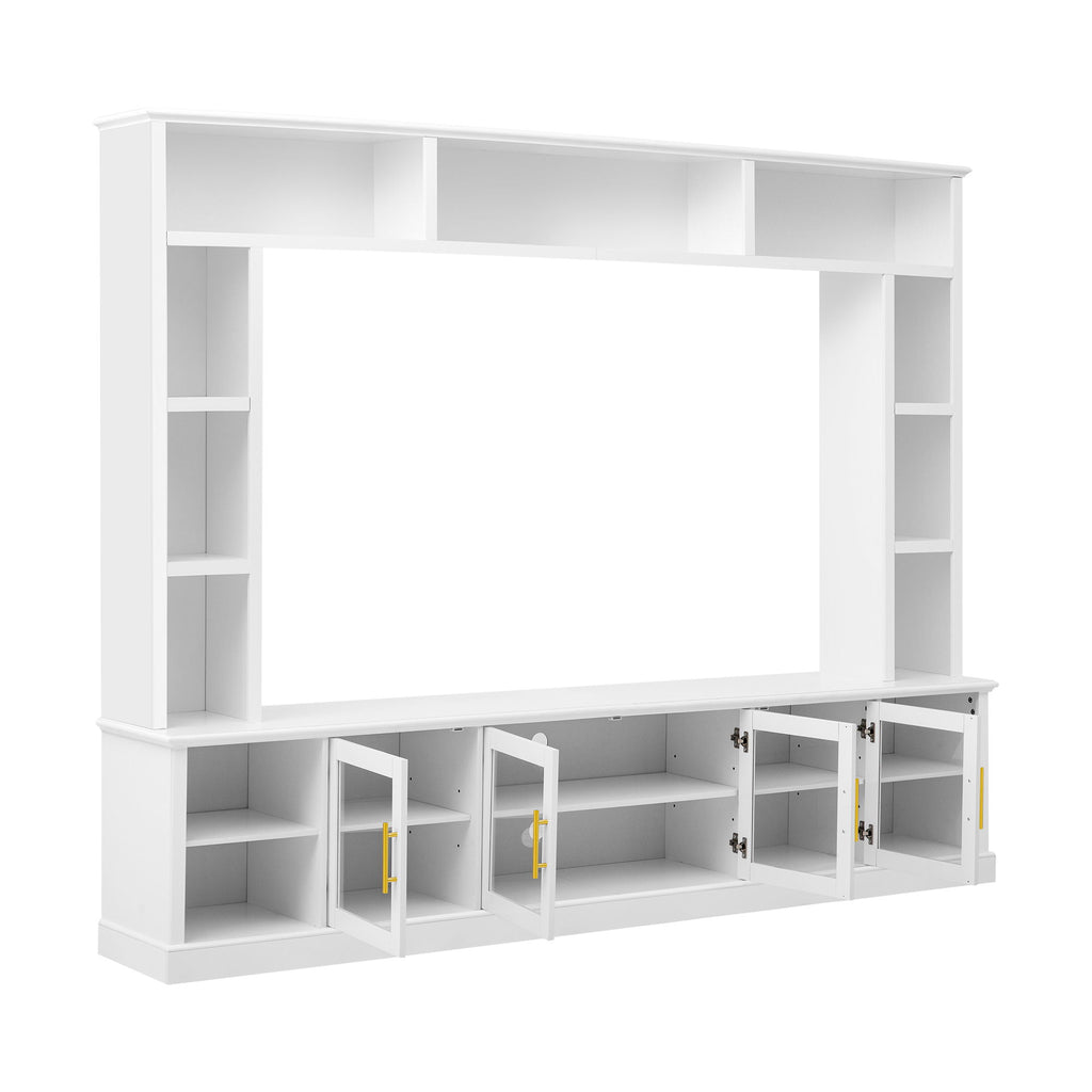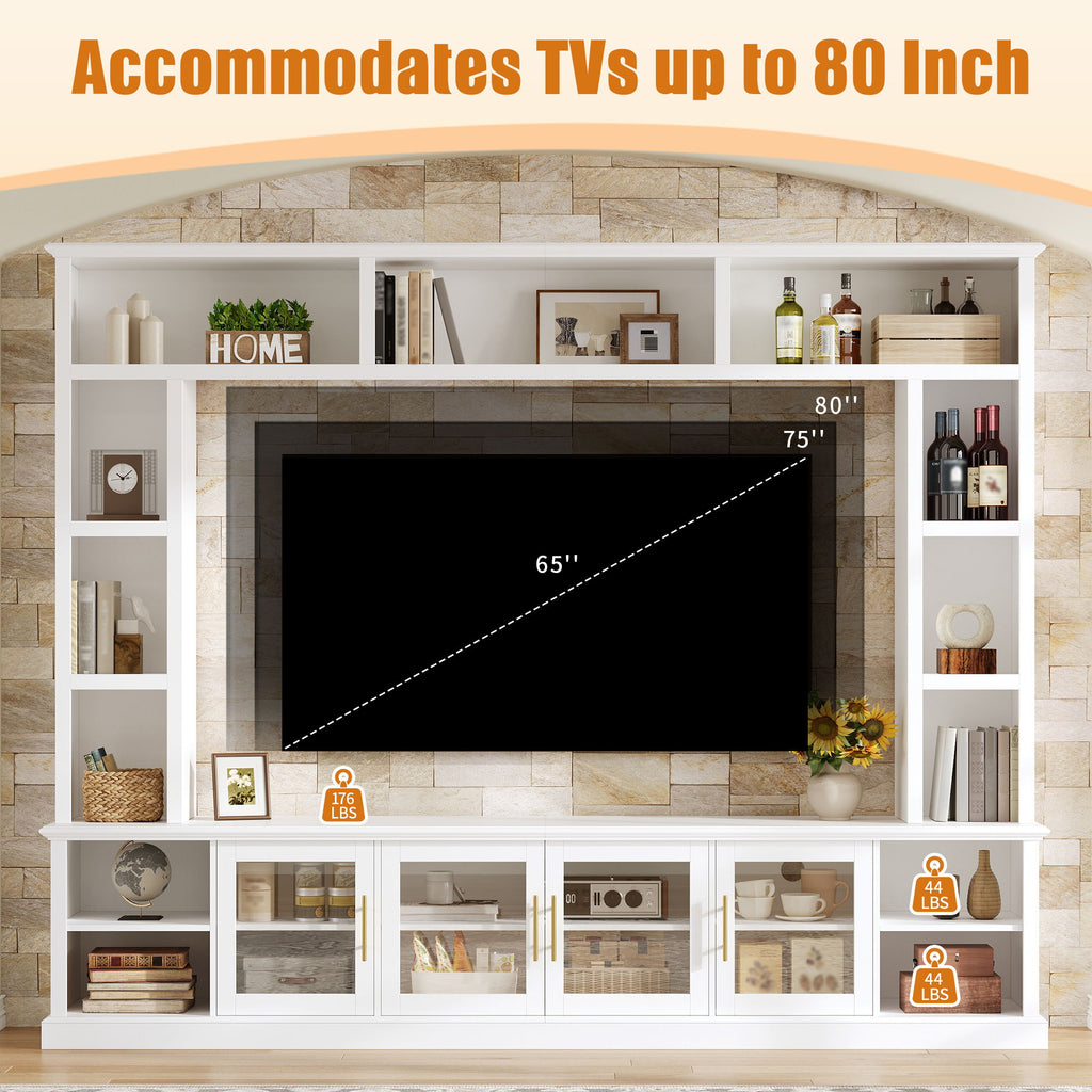 Entertainment Center With Bookshelves, TV Console Unit For Living Room, Holds TVs Up To 80" - White