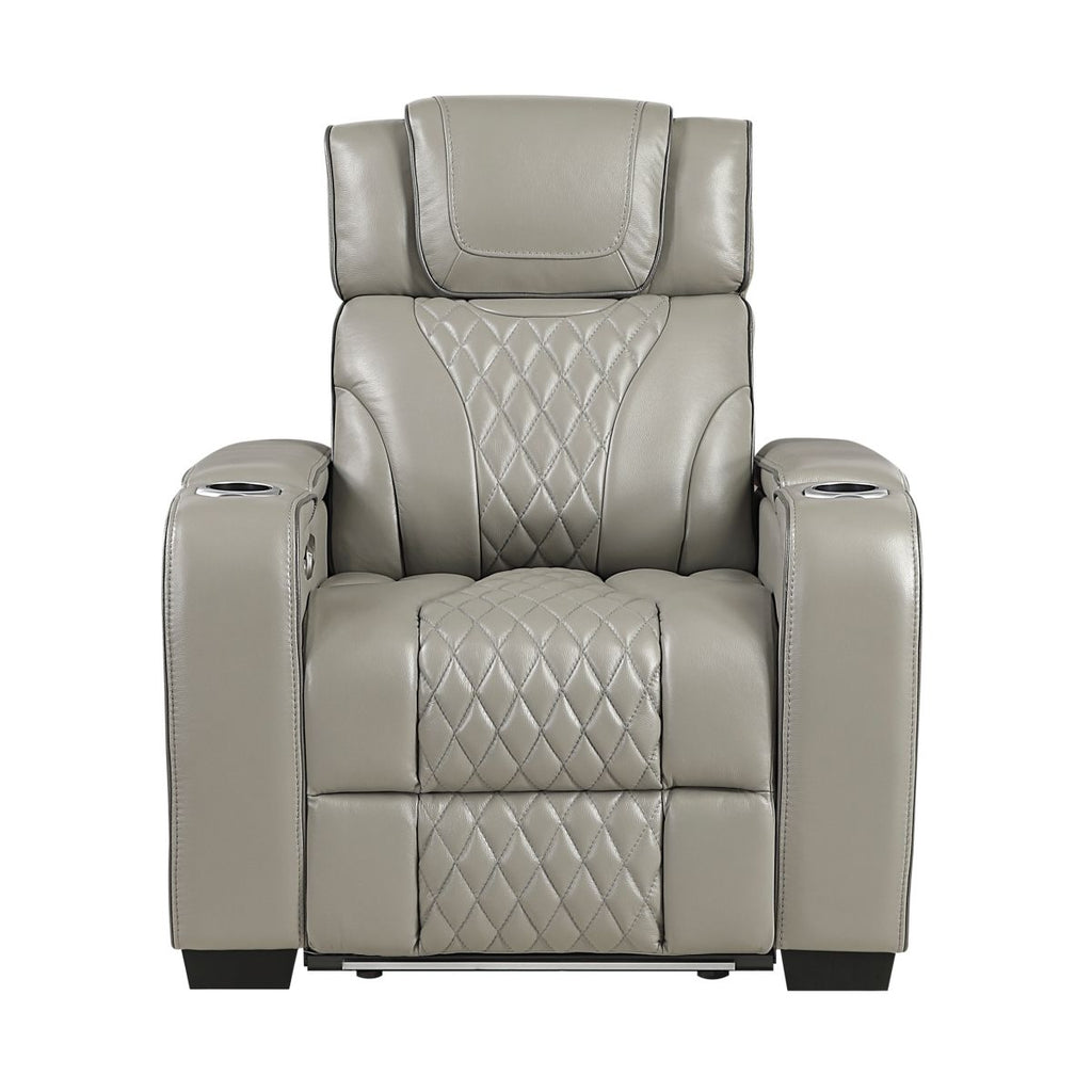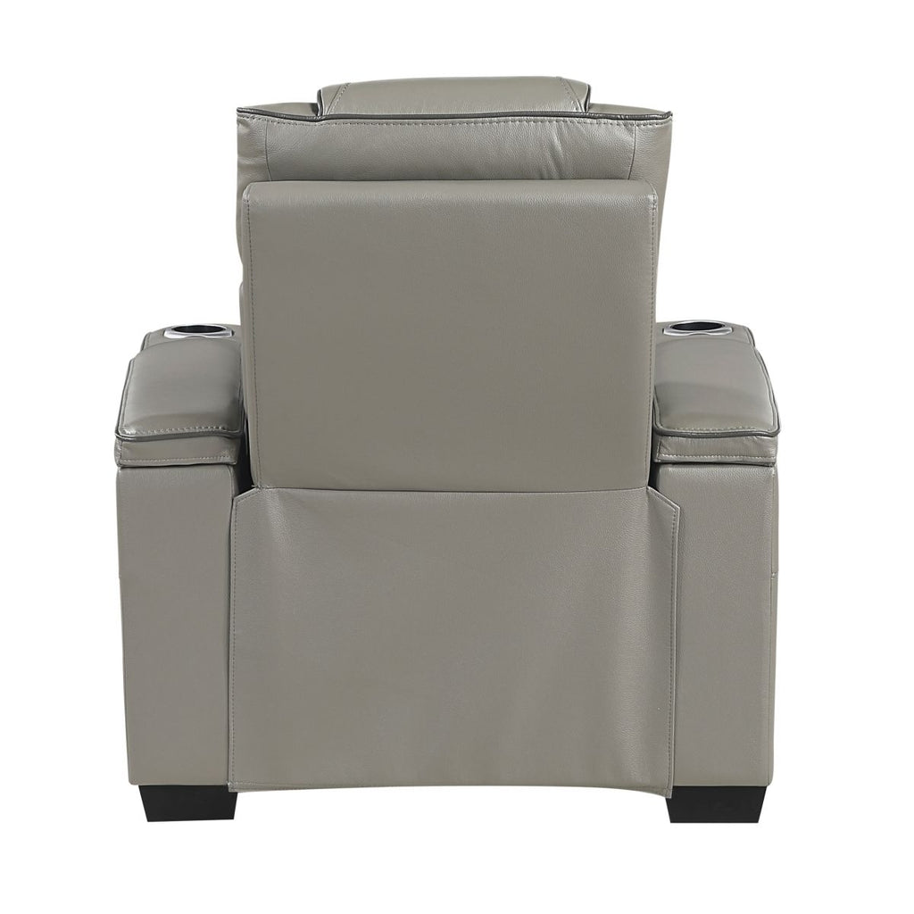 Apex - Power Reclining Chair With Power Headrest, Storage Arms With Cup Holders, Air Massage And Heat, LED Lighting And Charging Ports - Gray