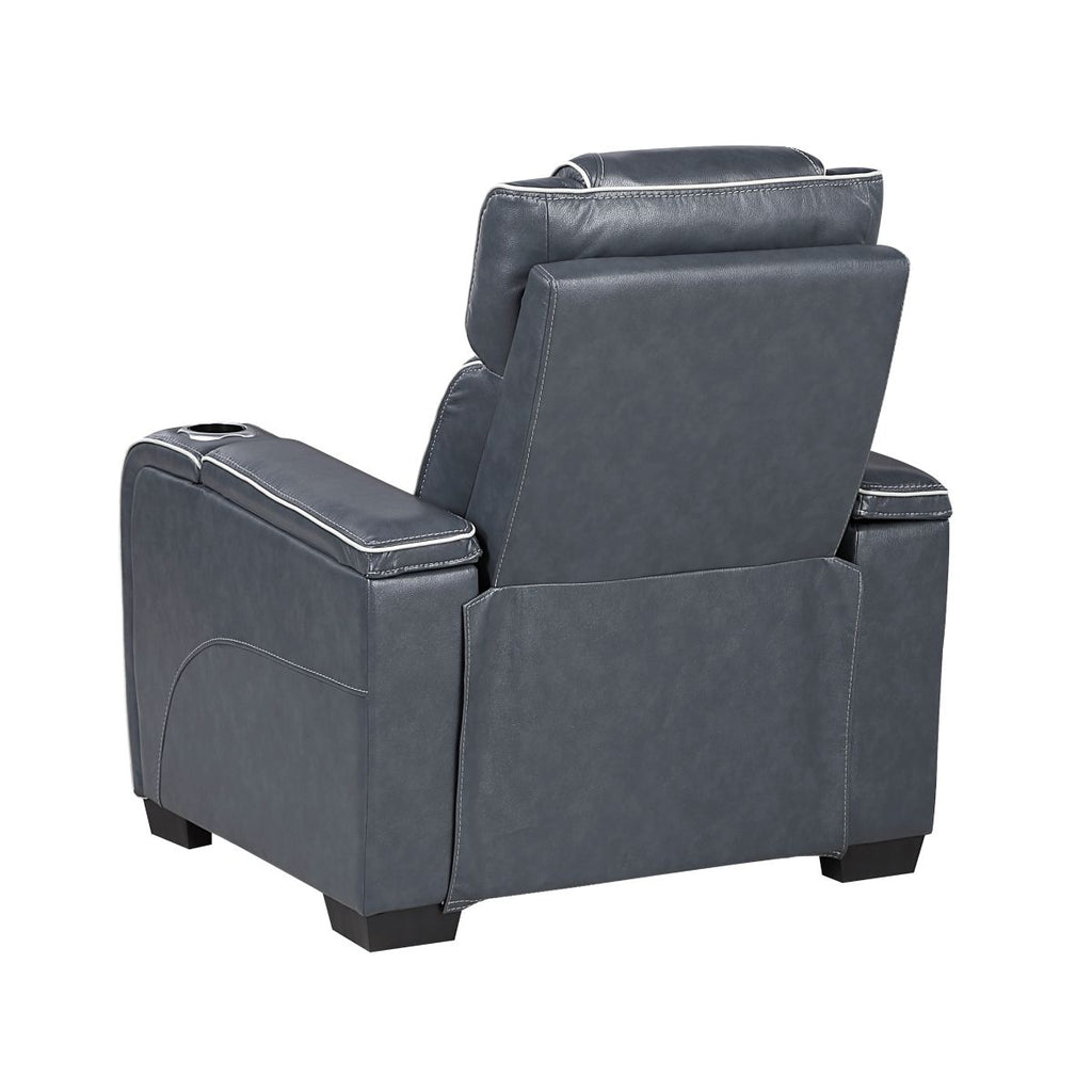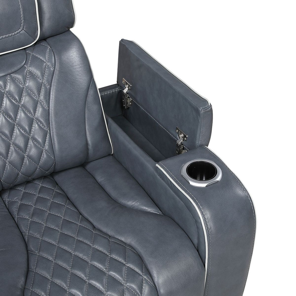 Apex - Power Reclining Chair With Power Headrest, Storage Arms With Cup Holders, Air Massage And Heat, LED Lighting And Charging Ports - Blue