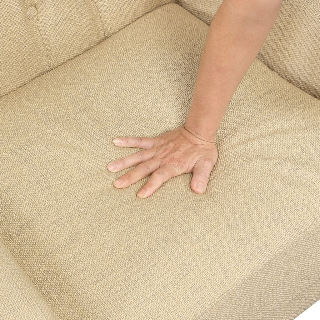 Upgrade your reading nook or living room with this classic wingback accent chair, featuring elegant button-tufted details and a timeless design. Built on a durable plywood frame with a robust 300lbs weight capacity, this chair ensures lasting stability. Experience superior comfort thanks to the plush, high-density foam padding over pocket coils and the soft textured fabric upholstery. Finished with rich solid wood legs in a brown finish, this wingback chair, featuring an attached back and reversible seat cushion, is the perfect blend of sophisticated style and luxurious seating comfort for any home.
