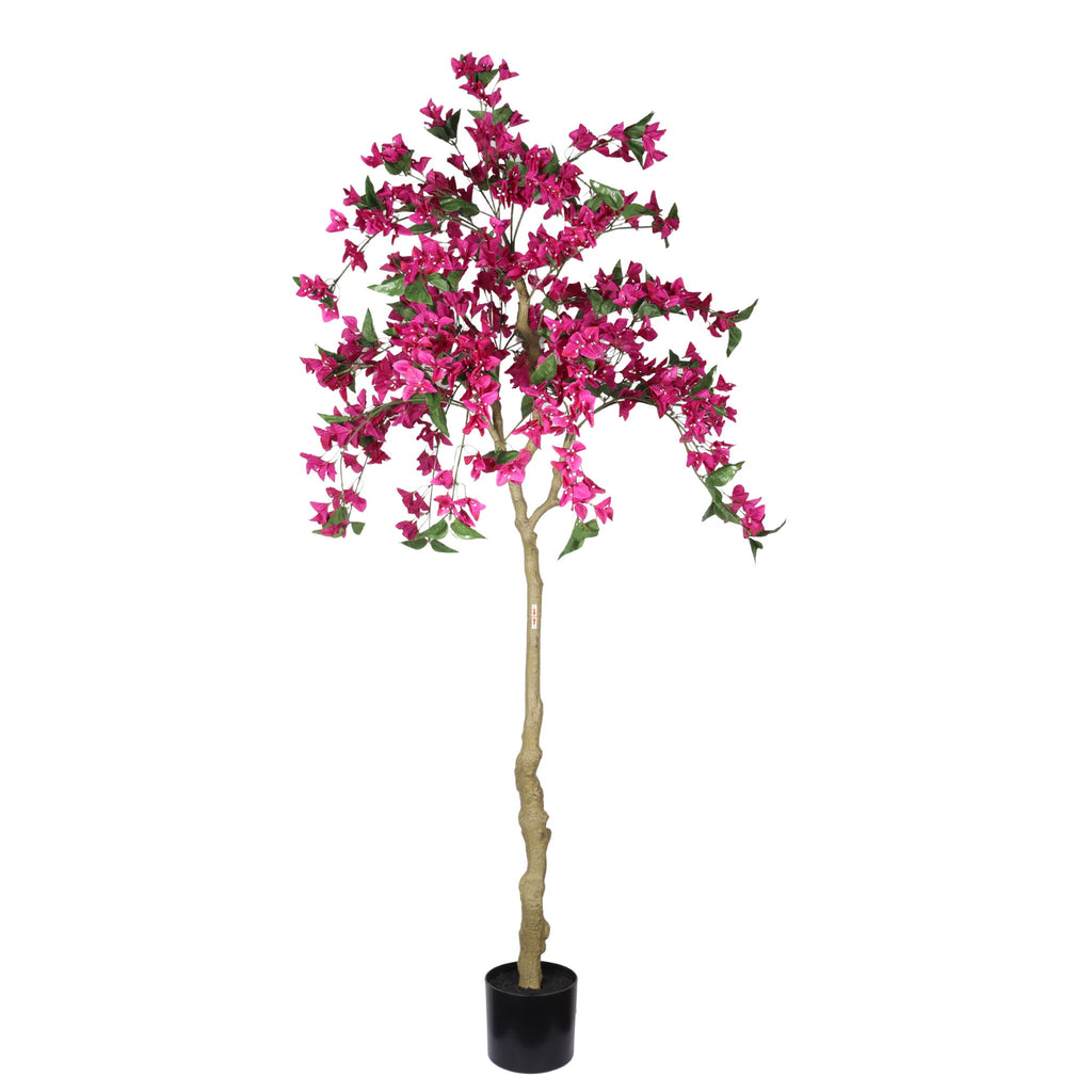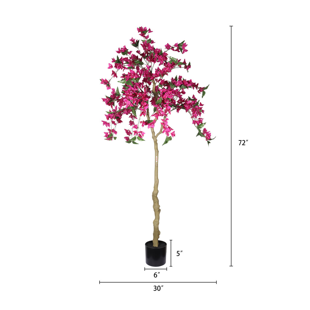 Artificial Bougainvillea Tree, Realistic Faux Potted Plant For Indoor Home Decor - Dark Pink / Green Leaves