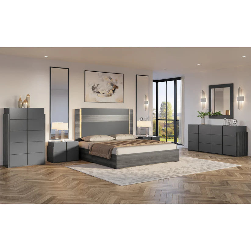 5-Piece Set: Bed (King/Queen), Dresser, Mirror, 1 Nightstand, and the matching Chest.