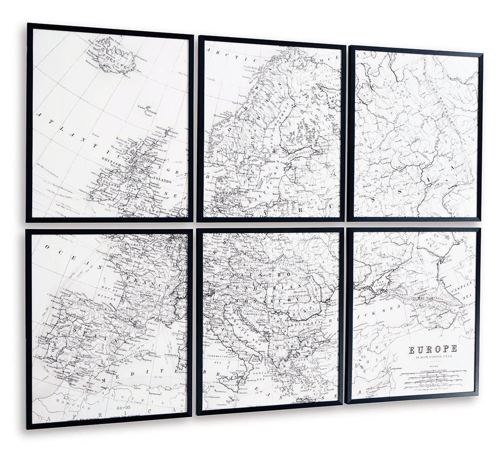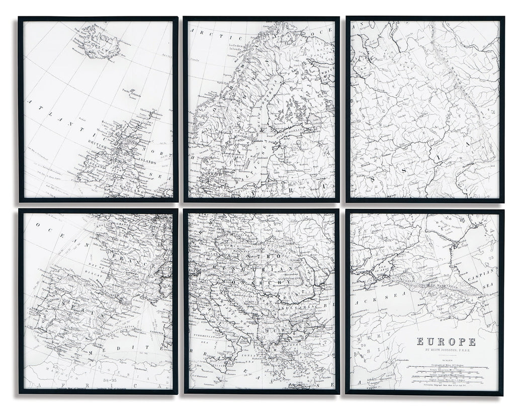For the well-traveled seeker of curated contemporary style, this wall art set is a must-have. A sprawling map of Europe stretches across six framed prints. The set's black and white design lets the details bring the drama, creating a tastefully eye-catching decorative element for your modern home.