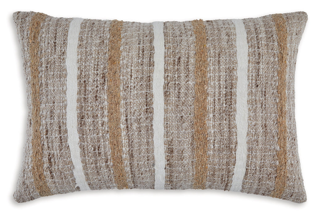 This lumbar accent pillow lends casual style and personality to any room. Its neutral striped design is an easy way to refresh your furniture for a new look and feel. Therapeutic as well as appealing, this pillow provides back support no matter where you're sitting.