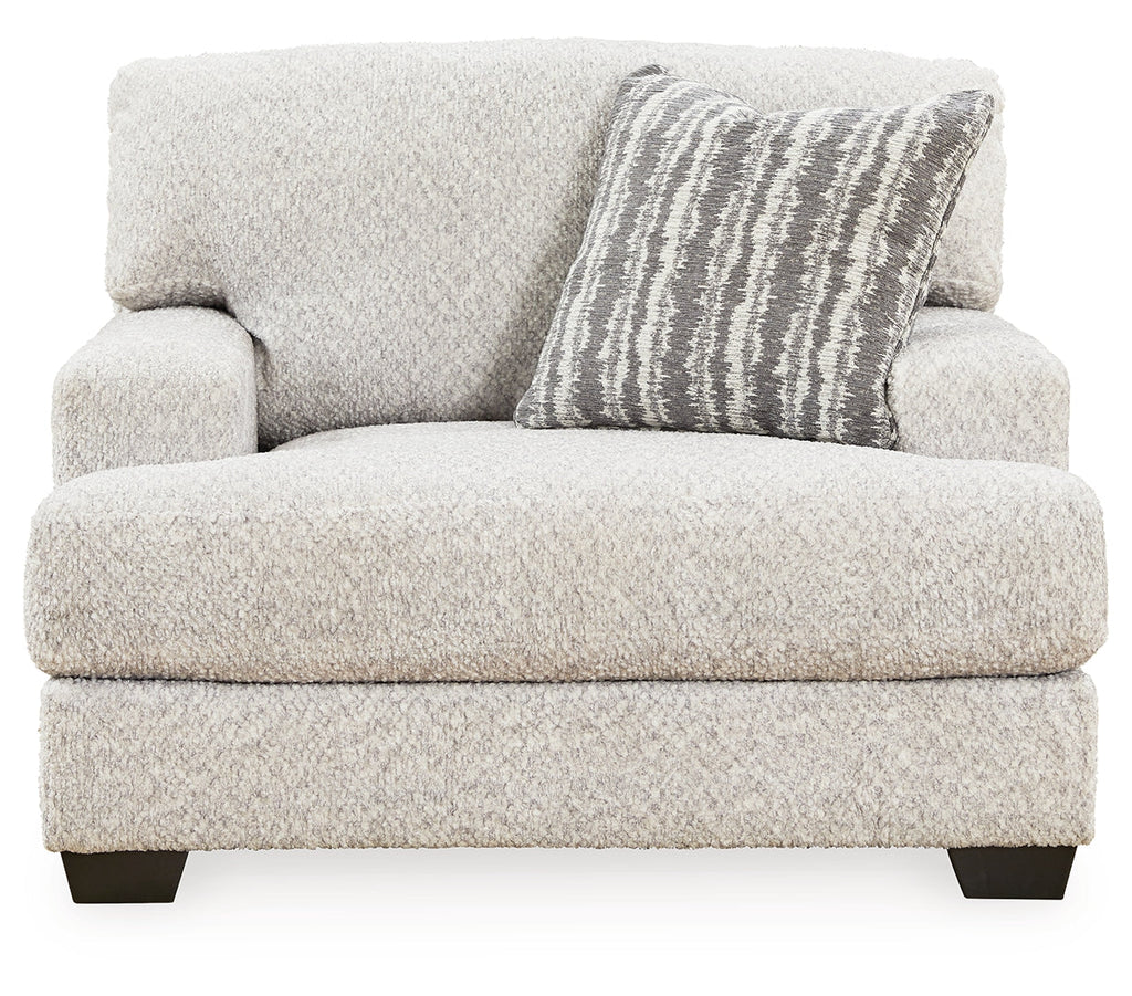 This oversized chair speaks to those drawn to fresh, contemporary style with richly neutral appeal. Wrapped in a wonderfully plush fabric loaded with multi-tonal interest, the on-trend chair has a warm, welcoming charm. Kick back, relax and settle in for comfort with this cool addition for modern spaces.