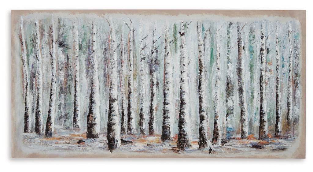 Bring the beauty of nature indoors with this wall art. Its shades and shadows invite you into the treescape, with hand-painted embellishments adding stunning detail. Hang this statement piece in the living room or a home office to incorporate a tranquil touch.