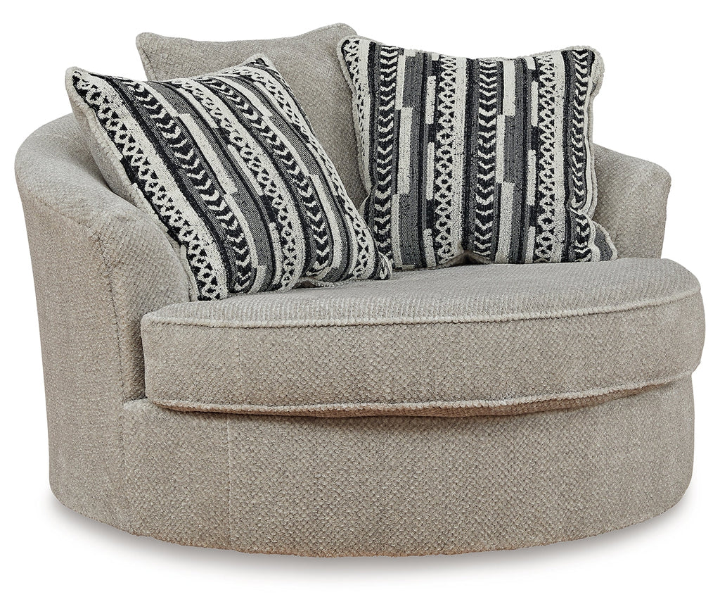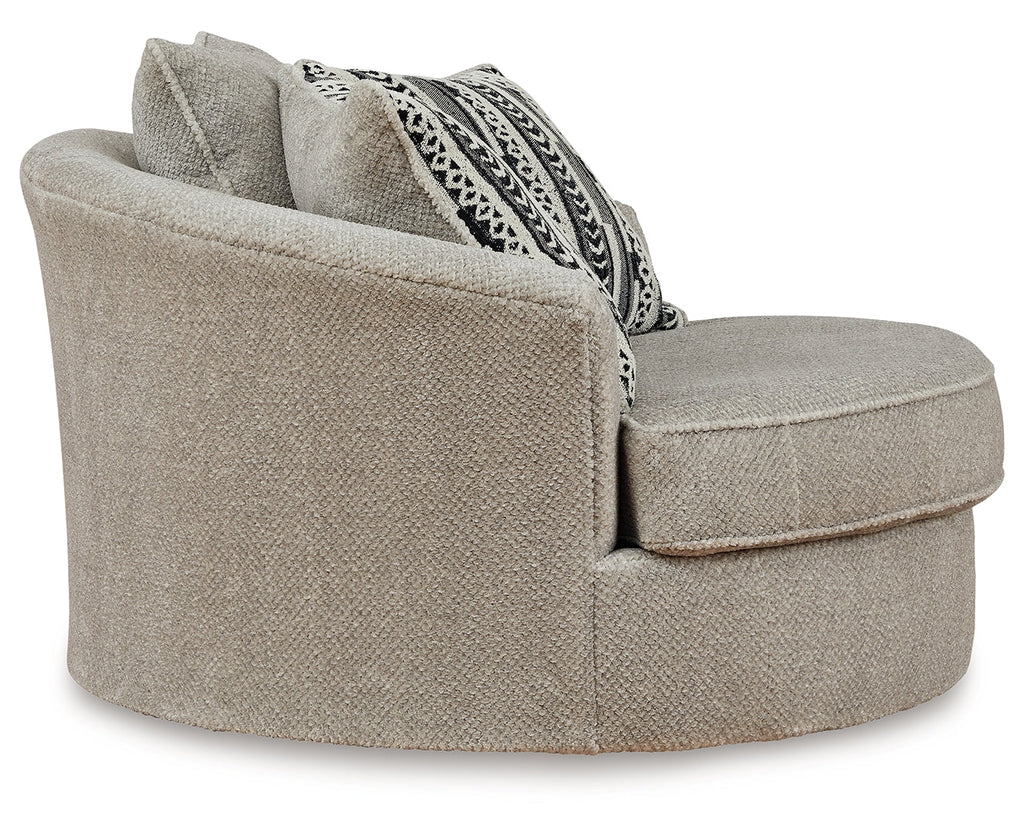 This oversized swivel accent chair caters to your need for contemporary comfort. Large in scale and decked out in feel-good fabric, it gives you space to sprawl out. And the 360-degree swivel motion makes it easy to view the TV or chat with others in your seating area. Quality time has never been so cozy.