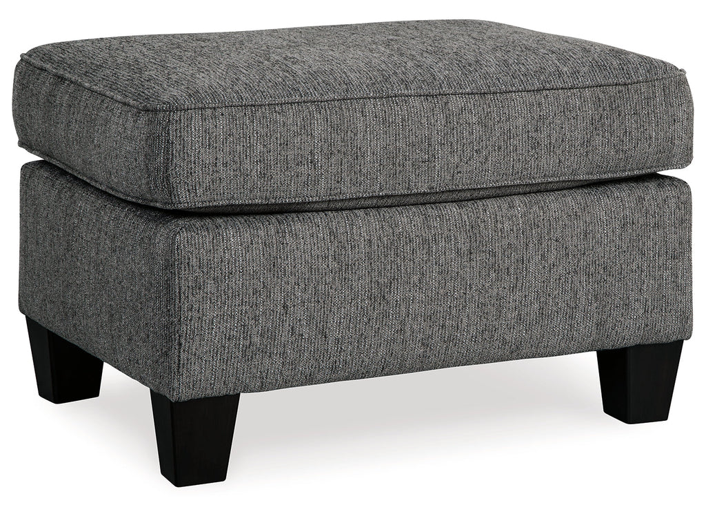 A contemporary dream. This ottoman checks off everything on your list. Upholstered in a textured chenille, the feel is up to par with the look. Tapered accent legs finish off the ottoman's top-to-bottom style.