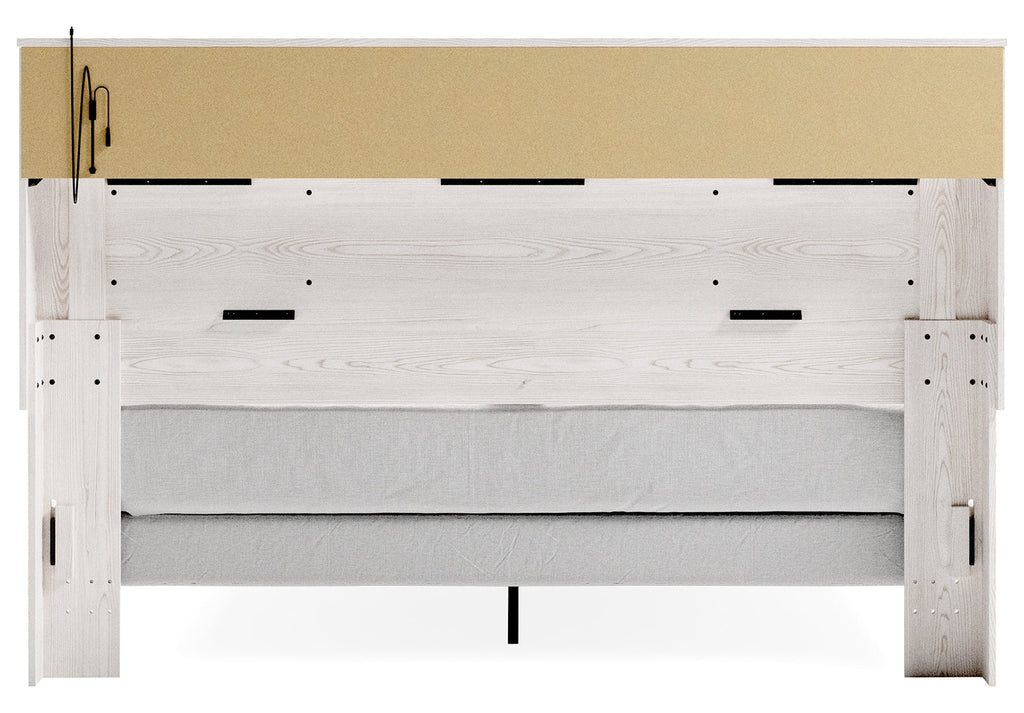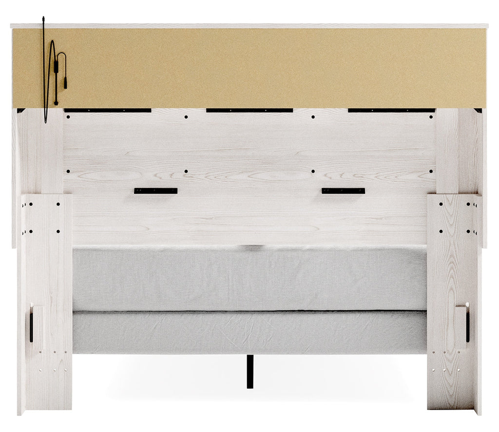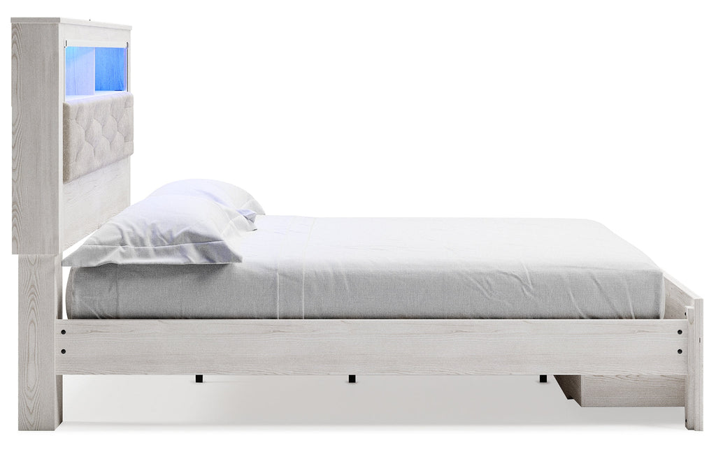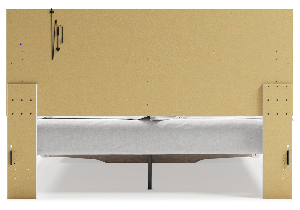 - King upholstered panel bookcase bed (headboard, footboard and rails)