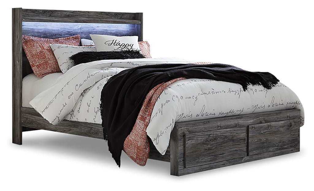 Rest in the casually cool style of this king panel bed. Its driftwood and smoky finish gives this bed an easy-going vibe that's perfect for creating a relaxed getaway in the room. Clean lines and modern charm blend for a fuss-free look. Mattress and foundation/box spring available, sold separately.