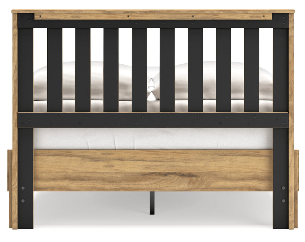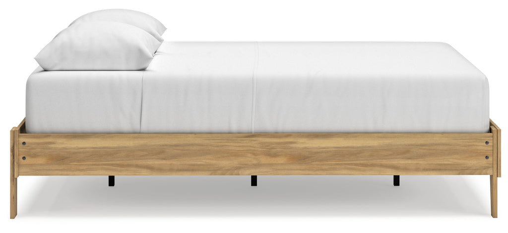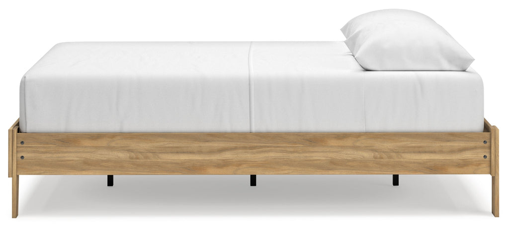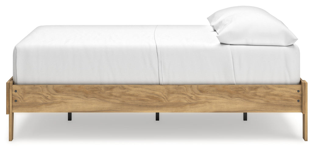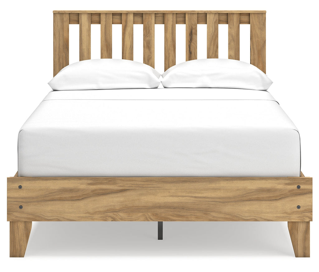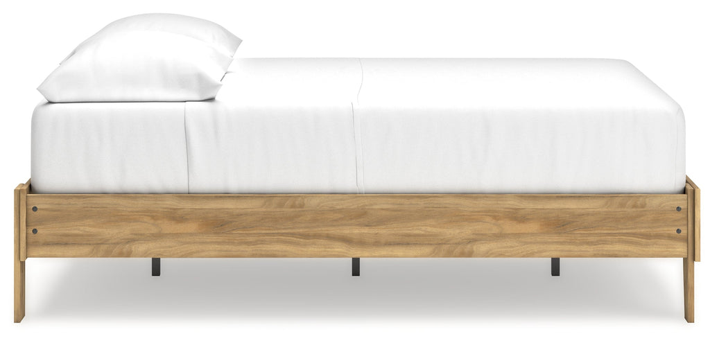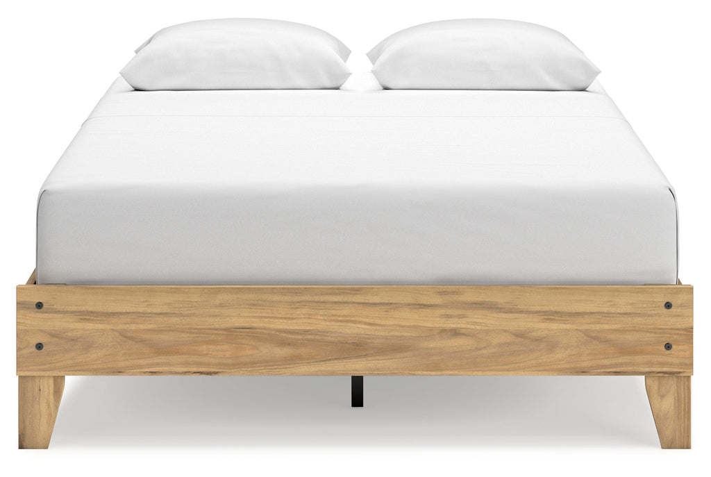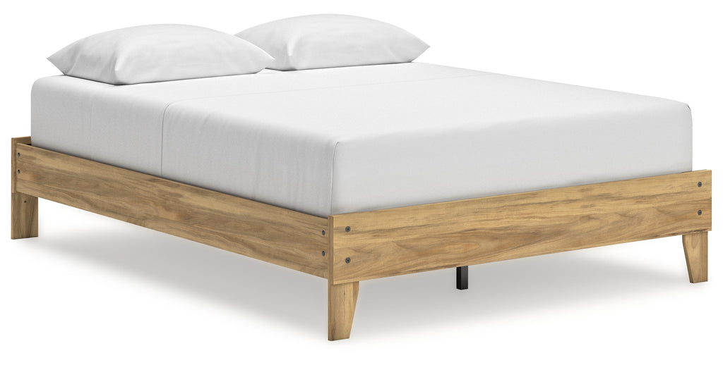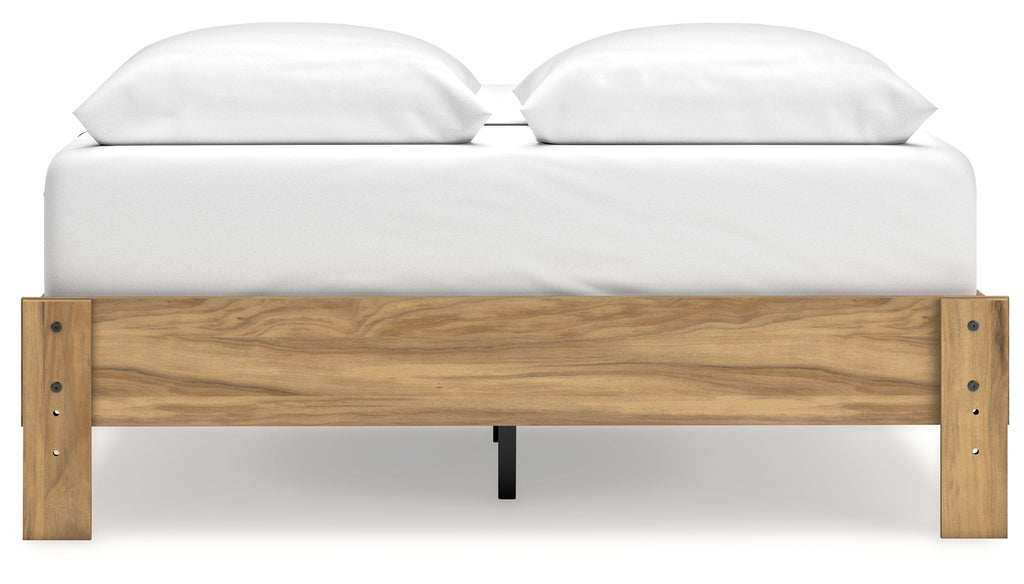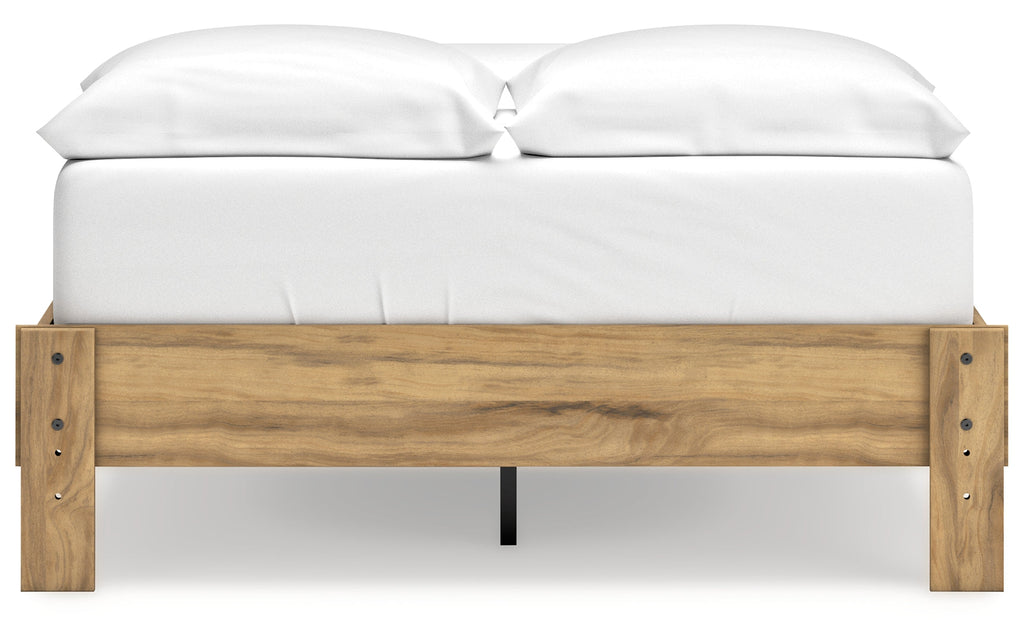 This full platform bed puts the dream of a casual bedroom retreat beautifully within budget. A warm light brown finish over replicated hickory grain exudes a homey vibe. It’s a simply relaxed way to achieve the sanctuary of your dreams without needing a foundation or box spring.