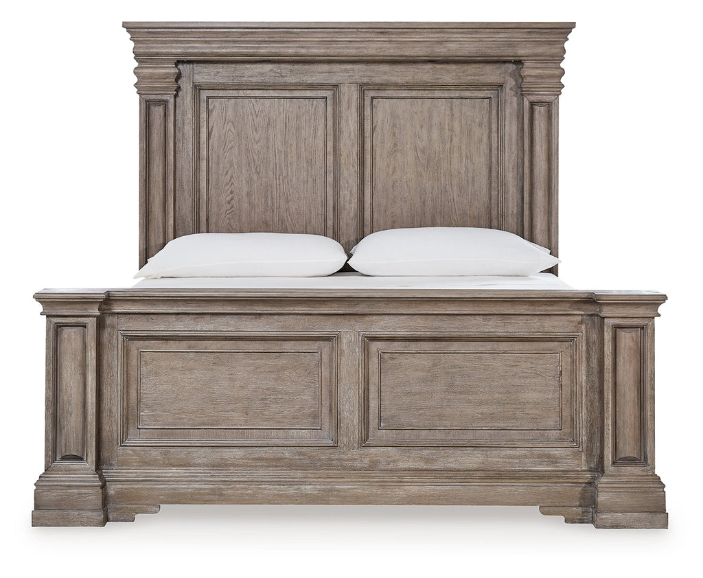 Discover something exceptional with this California king panel bed. Its impressive mansion-style silhouette offers a casual traditional aesthetic embodied by classic-inspired decorative columns, inset framed panels and a relaxed grayish brown finish. Two overhead LED lights add cozy ambient lighting, exuding the calming mood you long for in the bedroom.