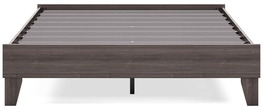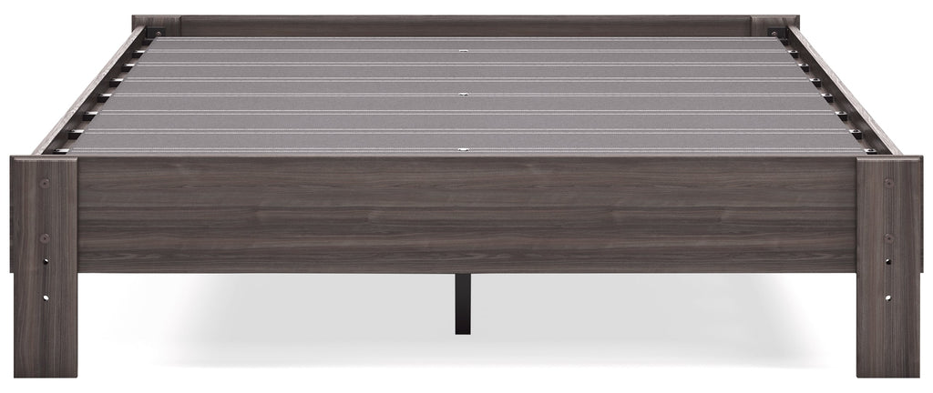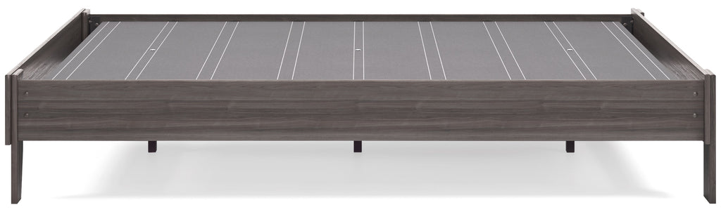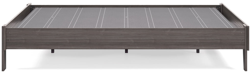 With clean lines evoking a mid-century modern mood, this queen platform bed is designed to bring harmony to your bedroom retreat. Finished in a warm gray that enhances the soothing sensibility.