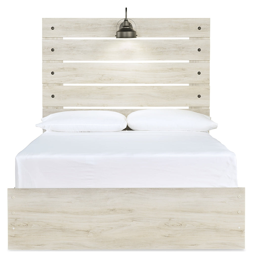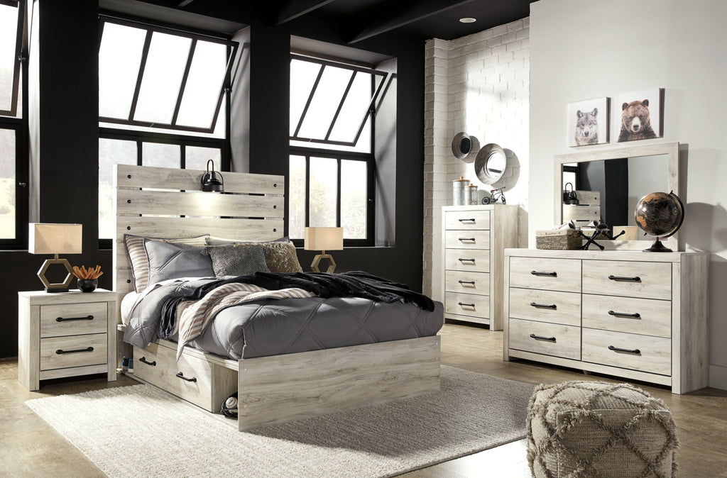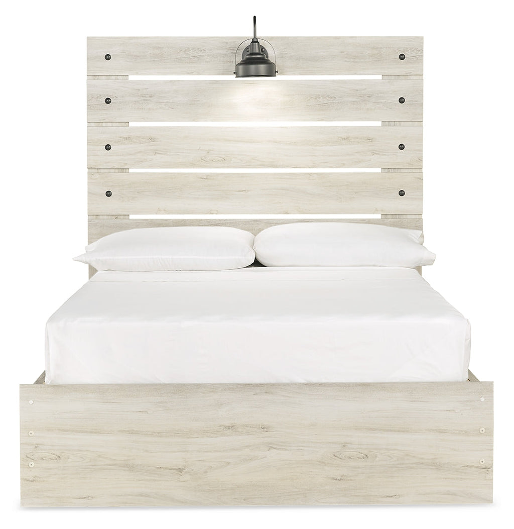 What a delightful take on rustic industrial style. Whether modern loft or modern farmhouse, this full panel bed makes itself at home. The wispy whitewash palette enhances without covering the grain for that weathered look you crave. Love to read in bed? You’re sure to find the retro-chic light sconce and USB plug-ins on the open-slat style headboard such a bright idea.
