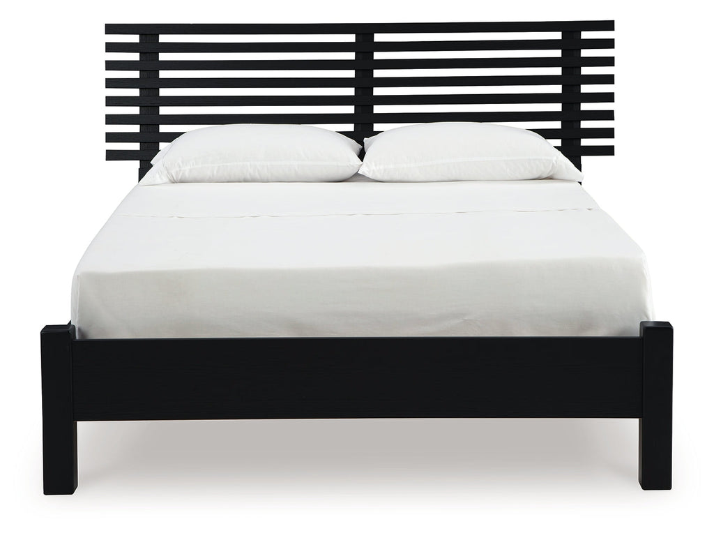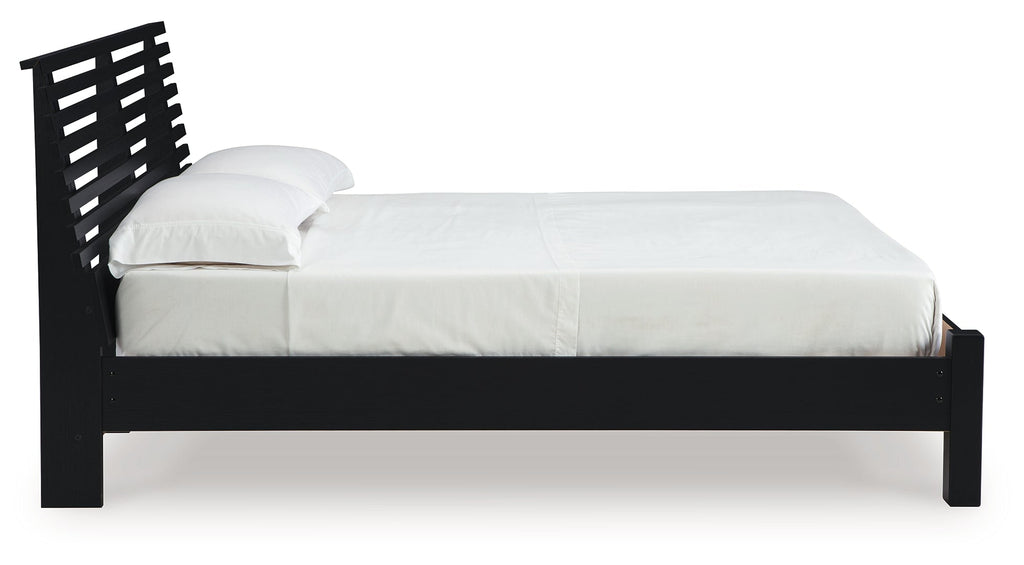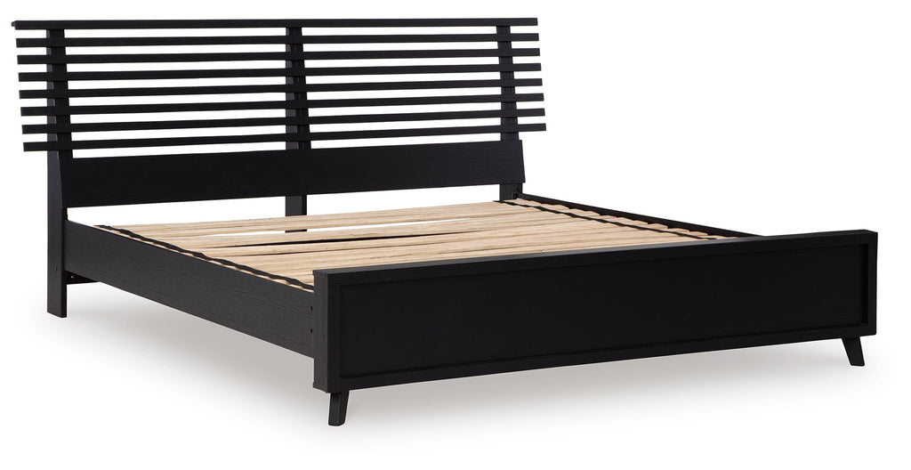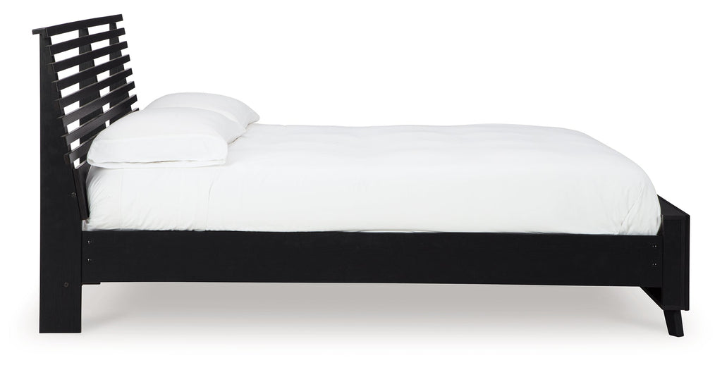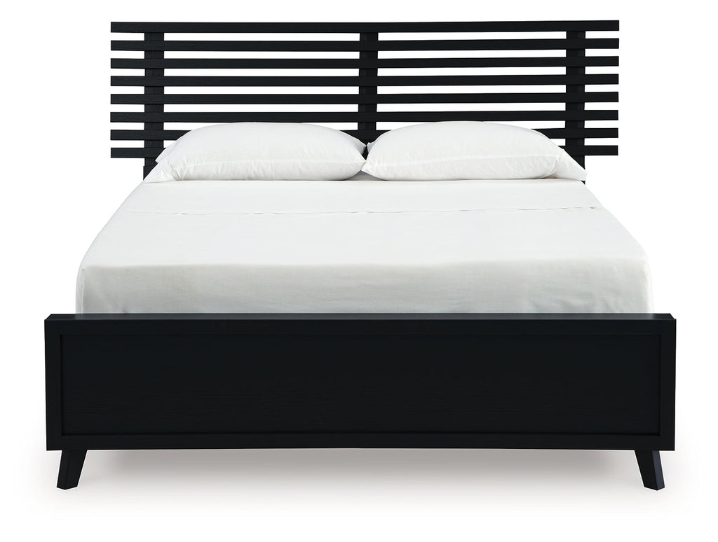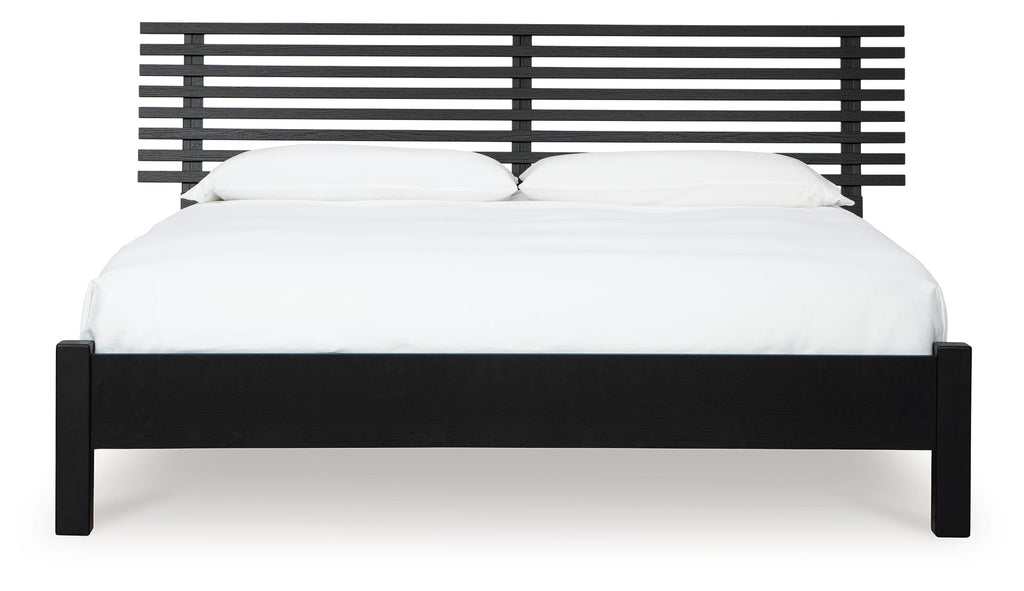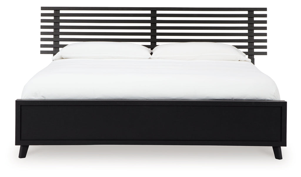 Sophisticated style for the savvy shopper. This panel bed prioritizes affordable, on-trend design. Its subtle replicated texture recalls the natural beauty of wood, highlighting the slatted styling. And a matte black finish savvily suits different approaches to modern aesthetics. Mix and match with light and bright hues, or pair with other dark tones for a moody look.