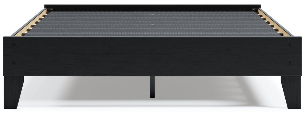 If you’re a fan of clean, crisp and contemporary interiors, rest assured this queen panel platform bed suits you. Its linear profile is enhanced with a matte black finish with subtle replicated wood grain. The headboard's peekaboo cutout adds a cut-above element. Hard to believe such a high-style aesthetic can be so attractively priced. Best of all, our innovative bed-in-a-box shipping system delivers your new bed right to the door.