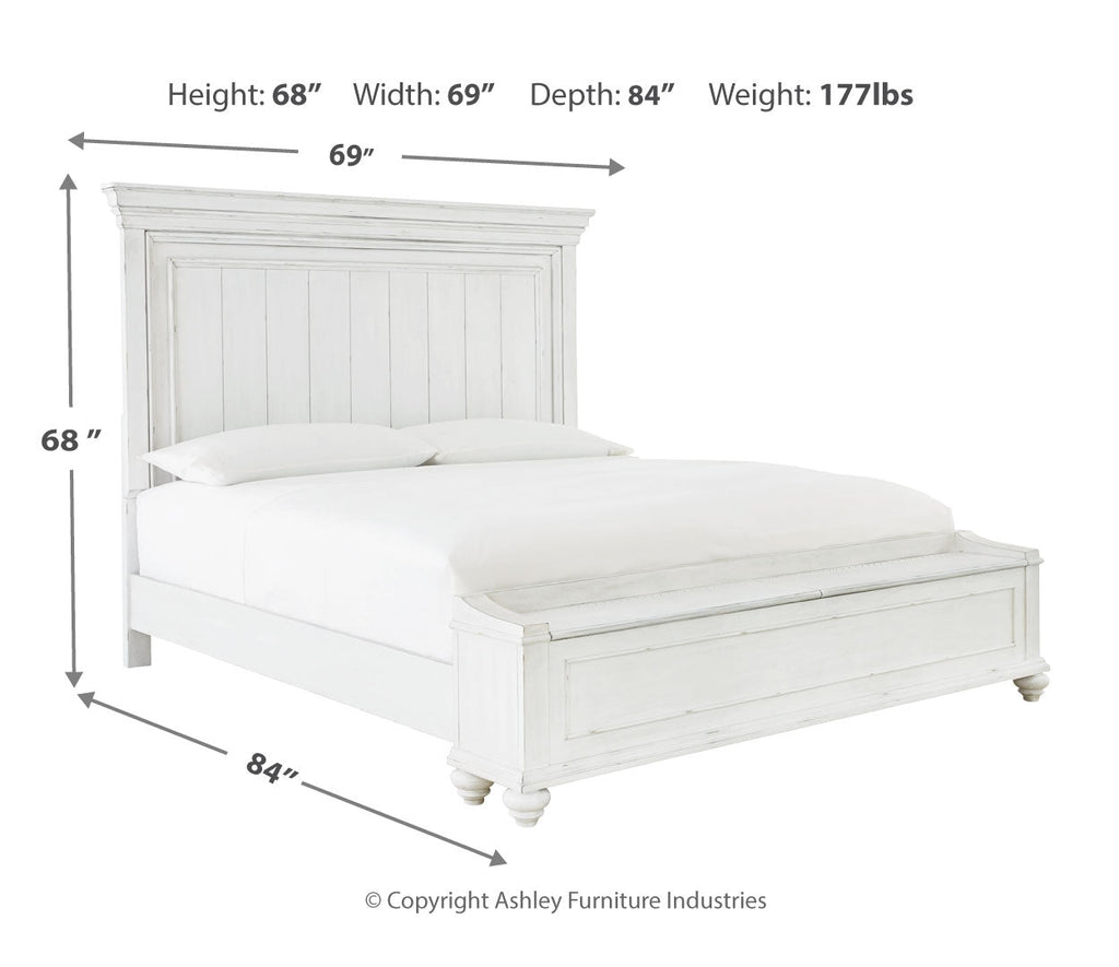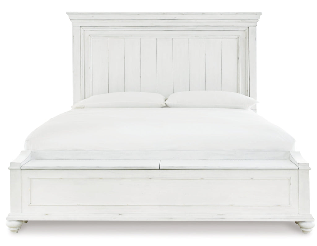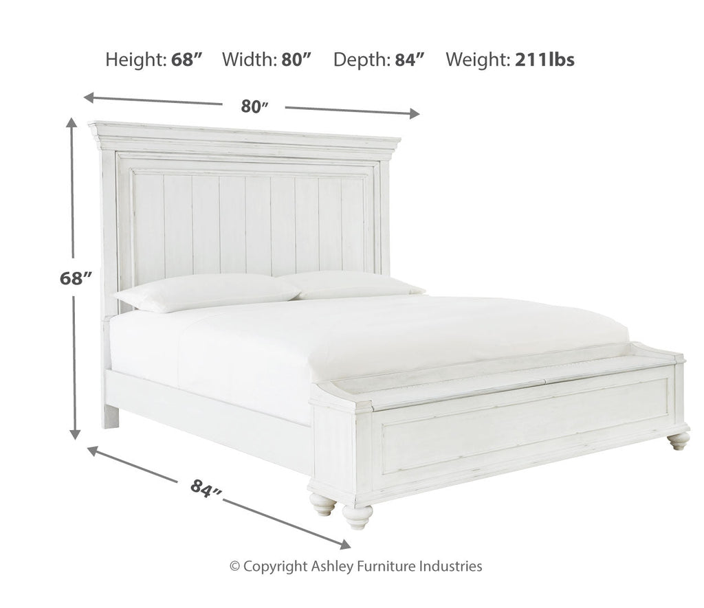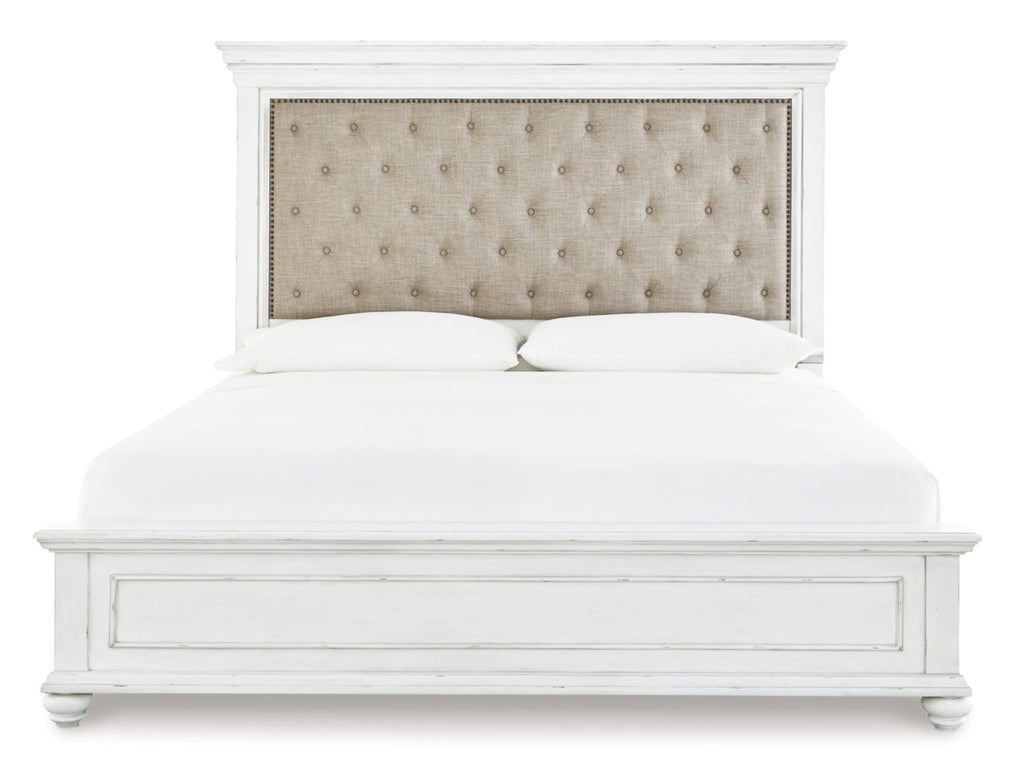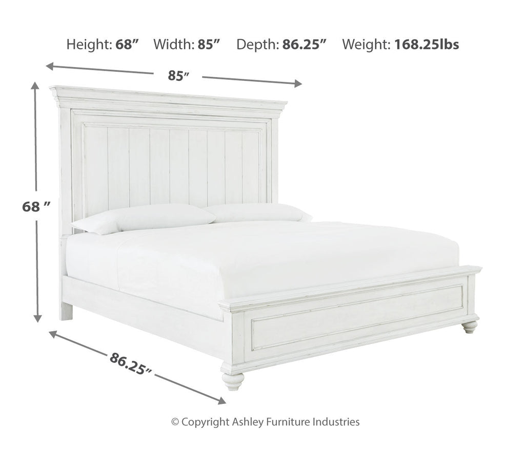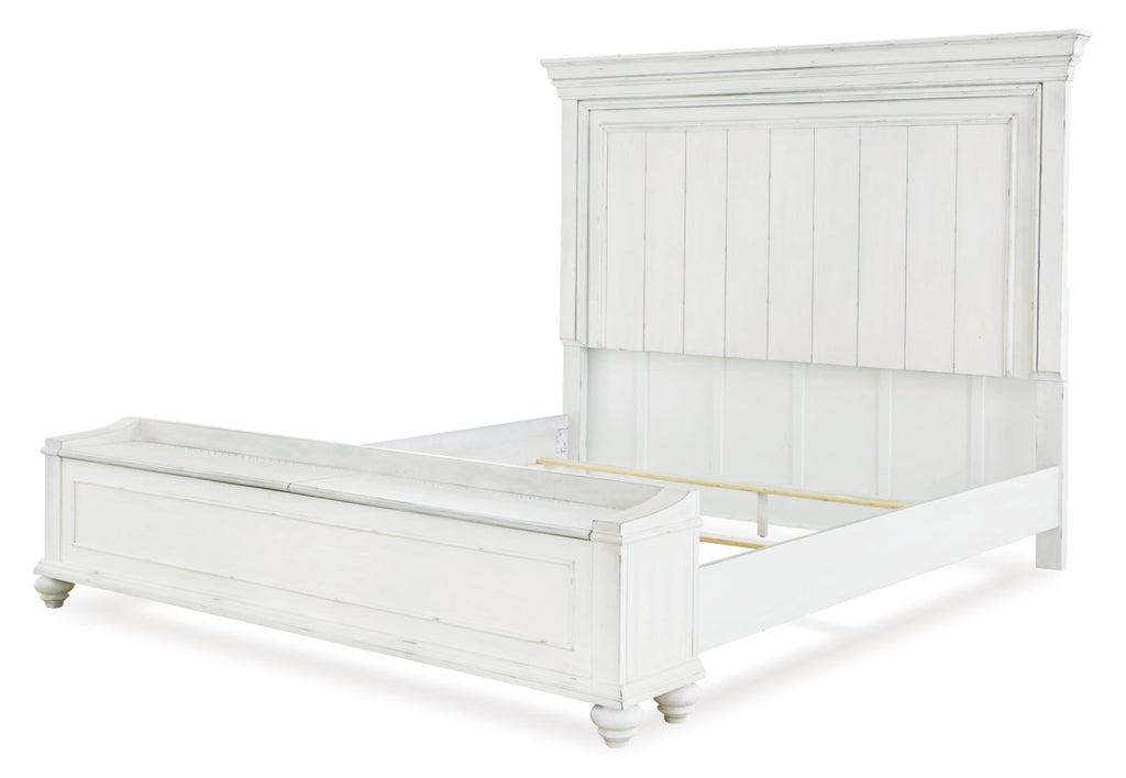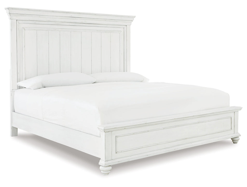 Give your retreat vintage charm with this California king panel bed. In a beautifully distressed whitewash finish, you'll love the headboard's grand style featuring a picture framed panel. Generously scaled moulding from top to bottom, along with bun feet give this bed character—evoking the feel of a quaint cottage escape.