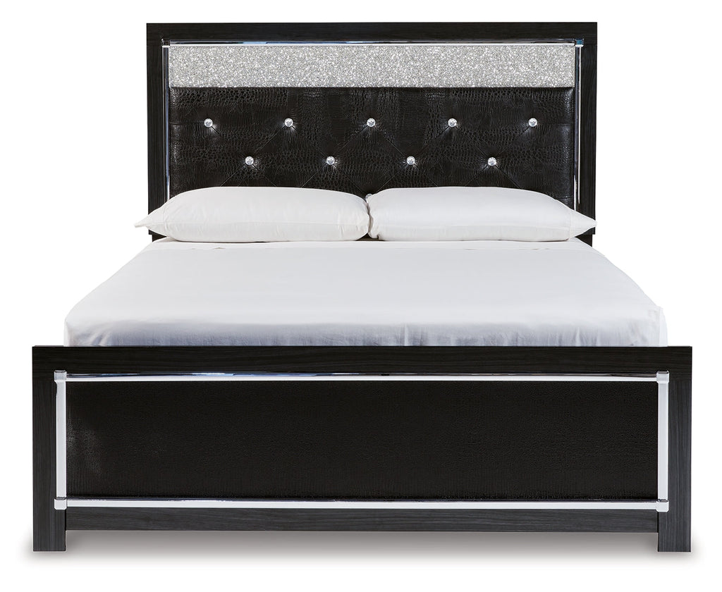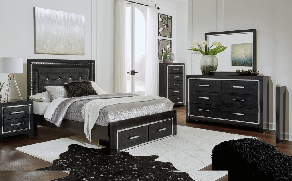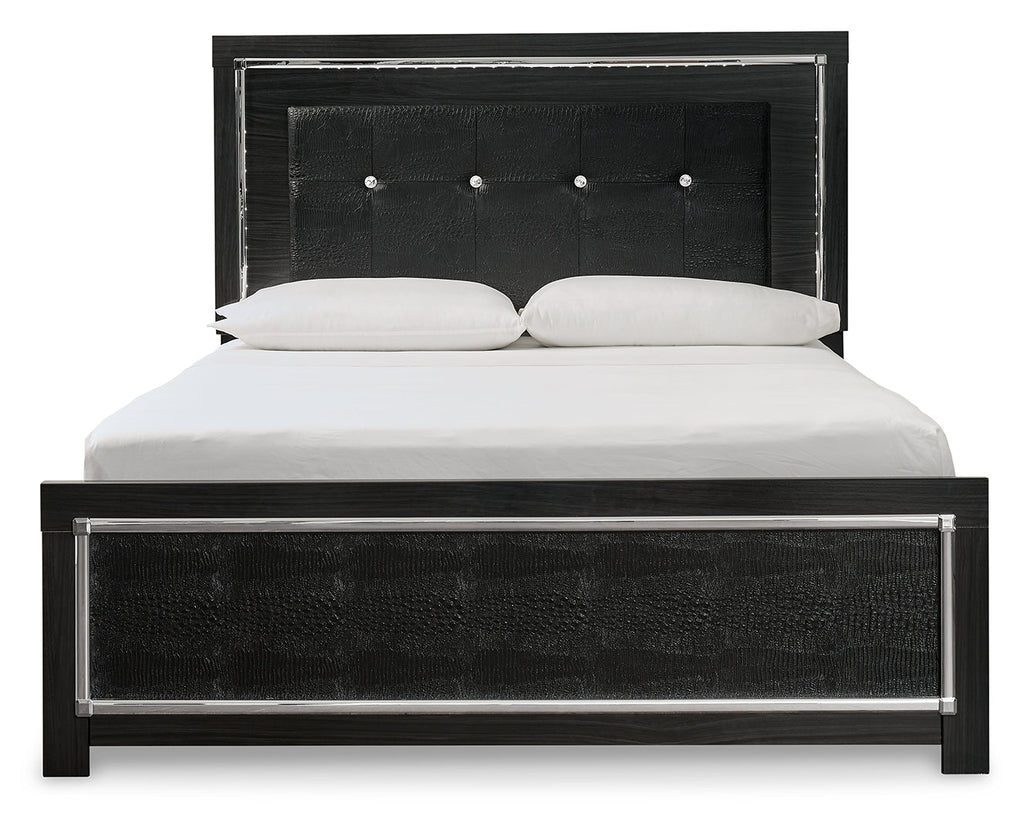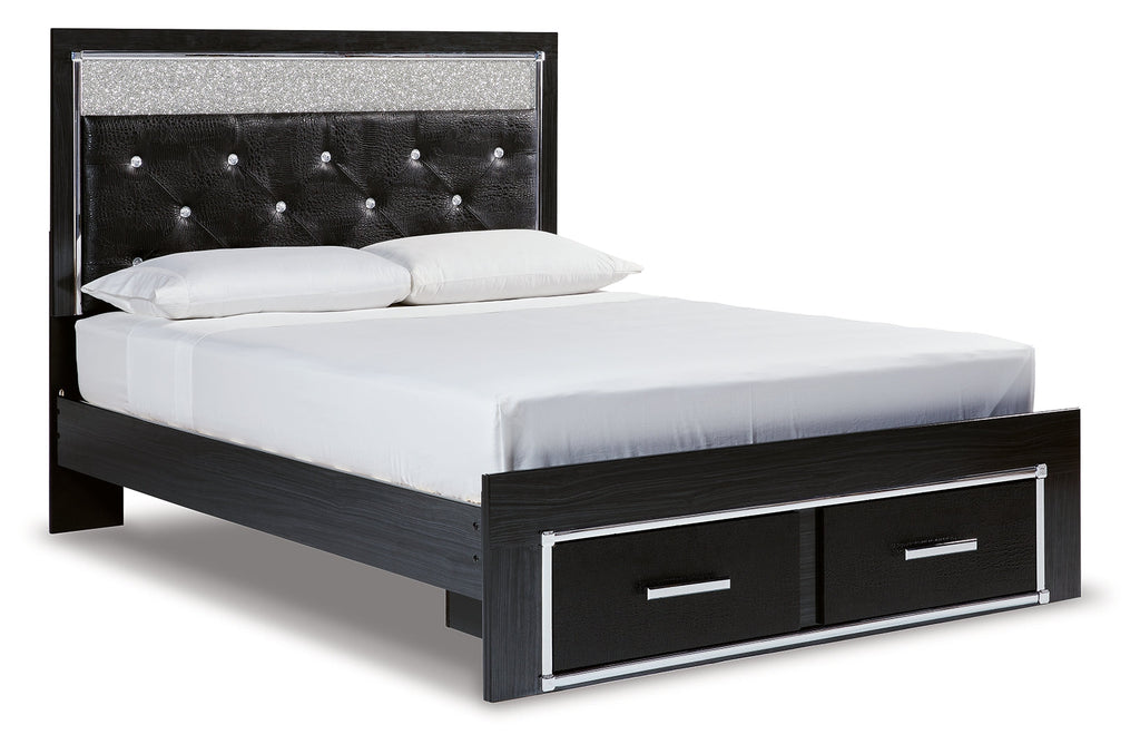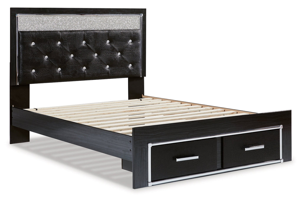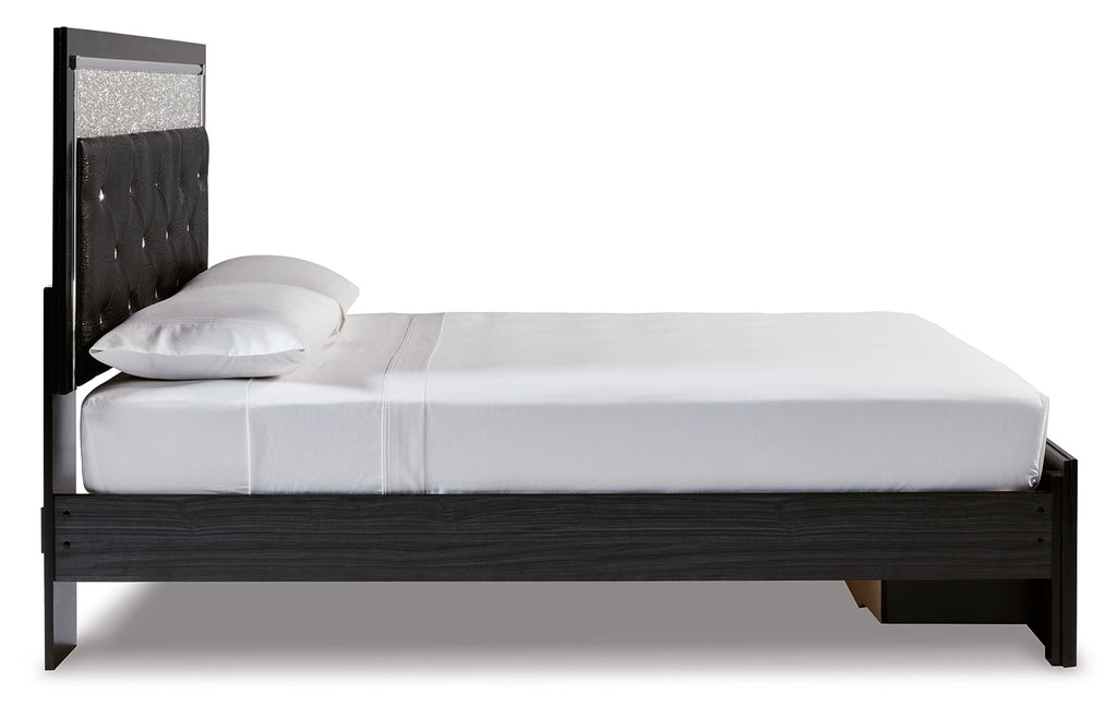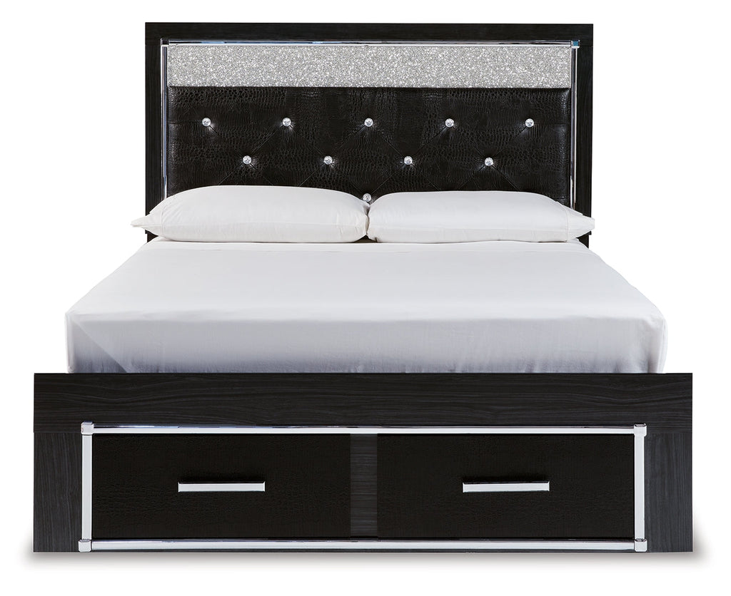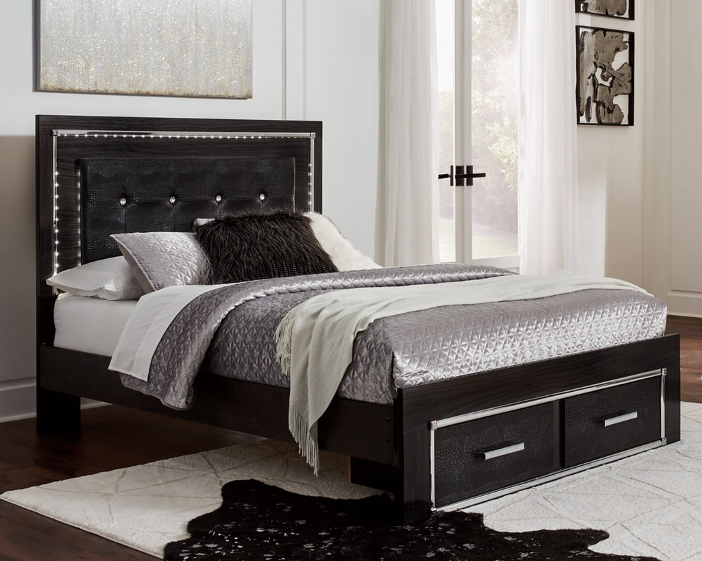Rest easy. The luxurious look you’ve been dreaming of is yours for the taking—at a price sure to put you at ease. This striking storage bed brings a sense of old Hollywood with a contemporary flair. A deep, dark finish, faceted chrome-tone accents and LED lighting exude Hollywood-chic style to the max. Padded windowpane-stitching on the sleek, black upholstery infuses a sumptuous look that’s upscale and indulgent, and utterly on trend. A wireless remote allows you to control the color and brightness to suit the mood.