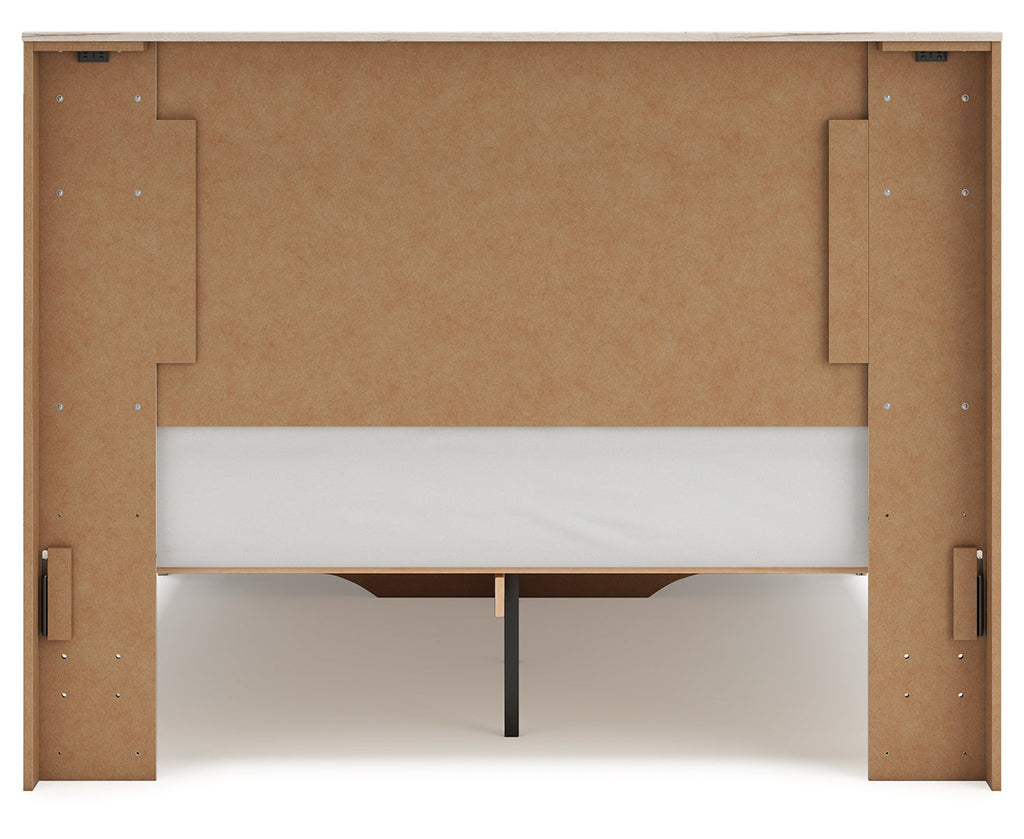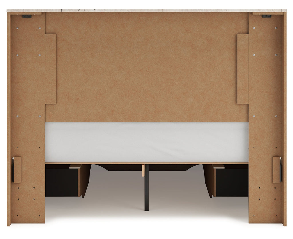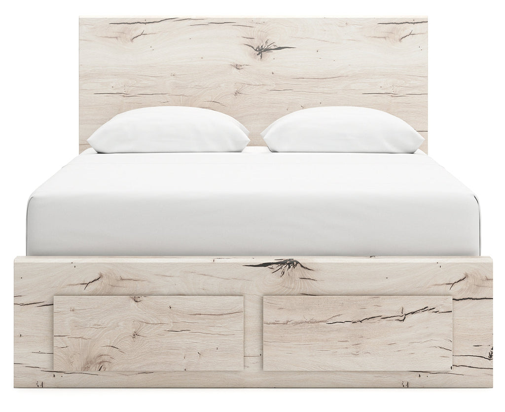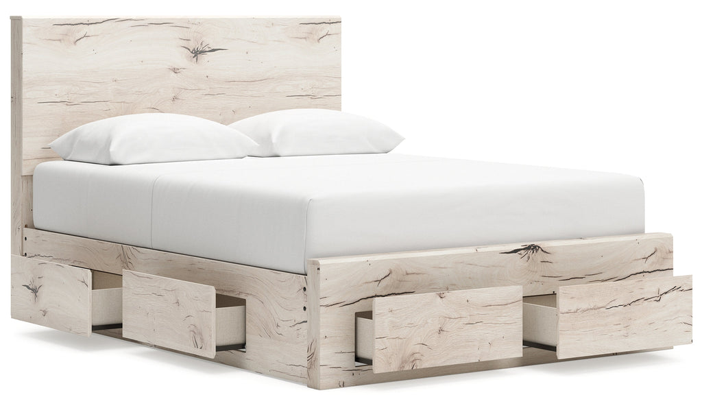 A fresh take on country living, this king panel storage bed strikes the perfect balance between farmhouse and contemporary. Its... A fresh take on country living, this king panel storage bed strikes the perfect balance between farmhouse and contemporary. Its rustic white finish and replicated reclaimed oak grain merge effortlessly with the hearty, clean-lined look we love today. Six storage drawers help you keep clothes organized and put clutter in its place. You’ll love how this bed's simple design transforms your bedroom into a harmonious haven. Includes panel headboard, storage footboard, 2 under bed storage units and roll slats Made with engineered wood (MDF/particleboard/plywood) and decorative laminate for the right balance of affordability and durability Rustic white finish over replicated reclaimed oak grain with authentic touch Decorative laminate replicates natural or man-made material surfaces with consistent color, pattern and texture 6 smooth-gliding storage drawers Drawer interiors are lined with a faux linen laminate for a clean, finished look Bed does not require additional foundation/box spring; accommodates most zero clearance adjustable bases with the addition of a bunkie board Mattress available, sold separately Minor assembly required Color: Light Natural InchesMetric : 79" W x 89.5" D x 48.5" H More Dimensions: Carton: InchesMetric : 0 W x 0 D x 0 H Express Shipped: InchesMetric : 0 W x 0 D x 0 H Weight : 328 lbs. Cubes : 70.72 ft UPC : Unit of Measure:EA Qty Per Carton:1 Number of Seats:0 Construction Information: Qty () () () - - Description loose seat cushions back cushion casings other pillows tight seat tight back Weight : 328 lbs. | Cube : 70.72 ft View more