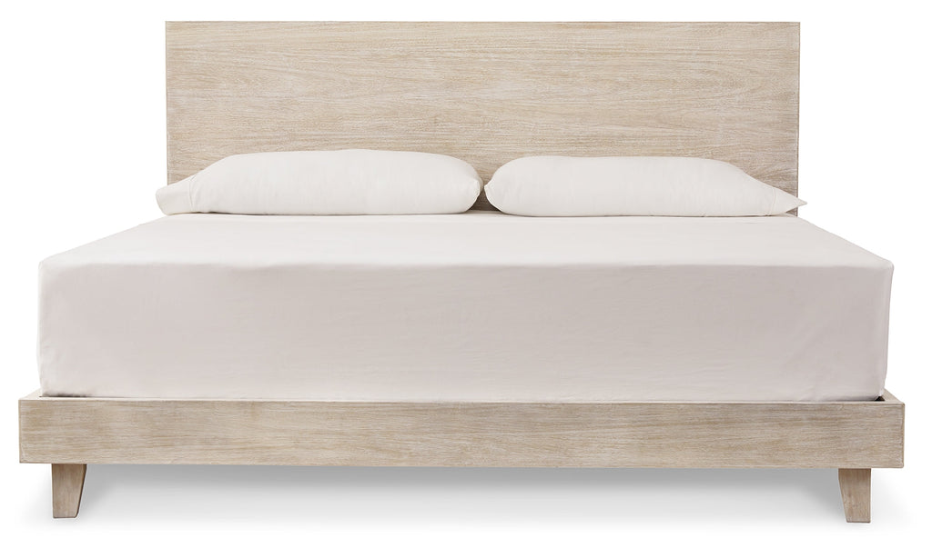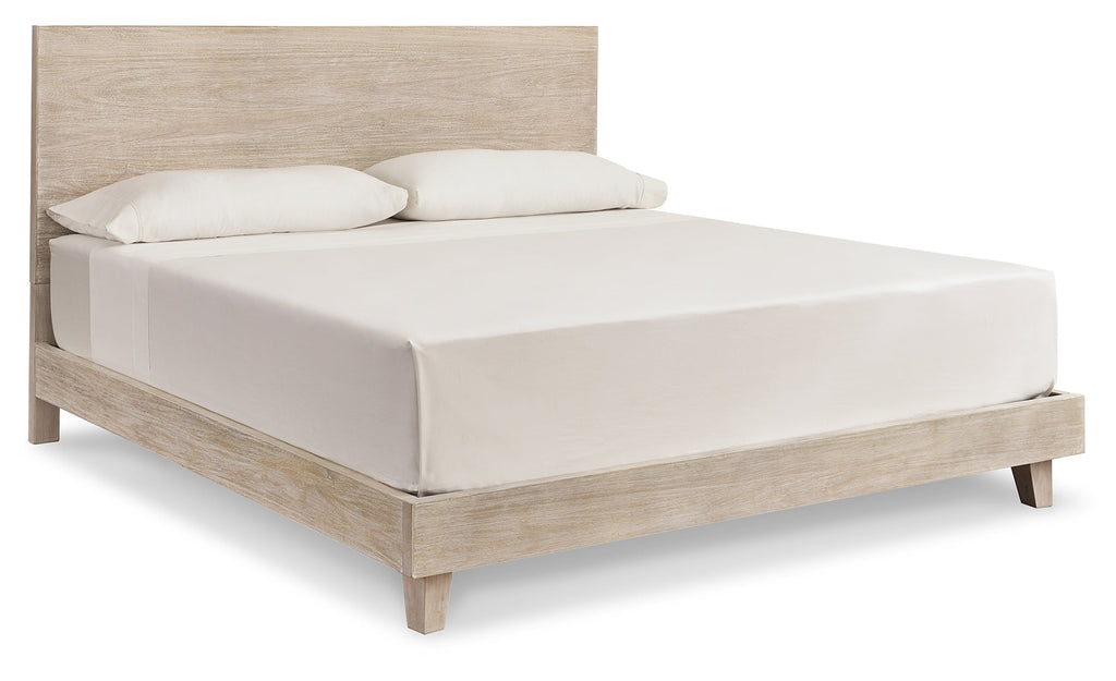 Appealing to your sophisticated sensibilities, this king panel bed masters the art of minimalism. Its transparent bisque finish accentuates the wood grain, balancing organic beauty with a contemporary colorway. A clean-lined profile helps to maintain the piece’s air of effortless elegance.