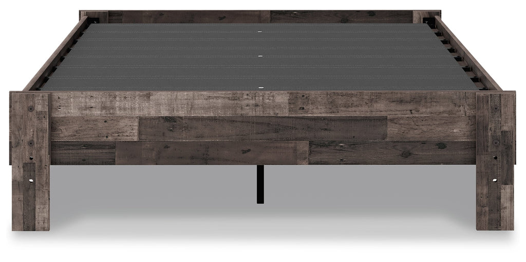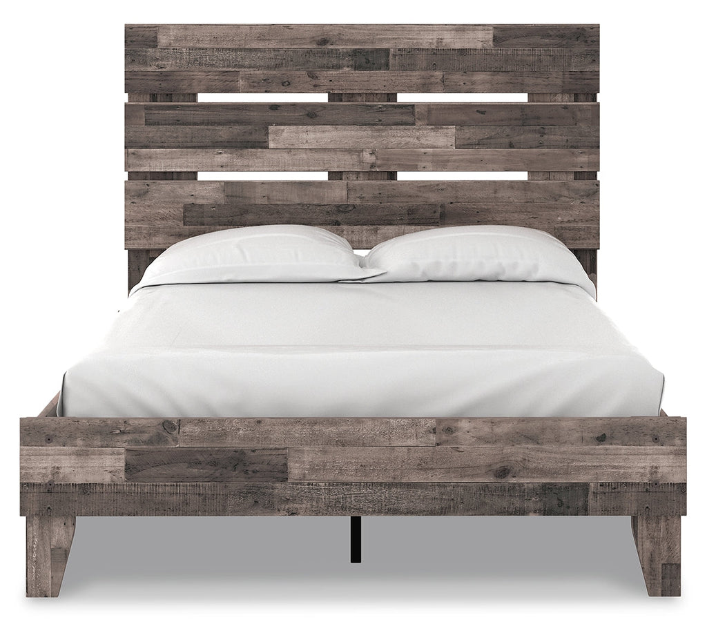 Streamlined design and a stunning finish come together in one simply extraordinary bed. This full panel bed is sure to impress with platform styling and a rich brown finish over replicated pine grain texture. Its mid-century profile is a nod to the past, while the updated finish keeps it solidly in the present.