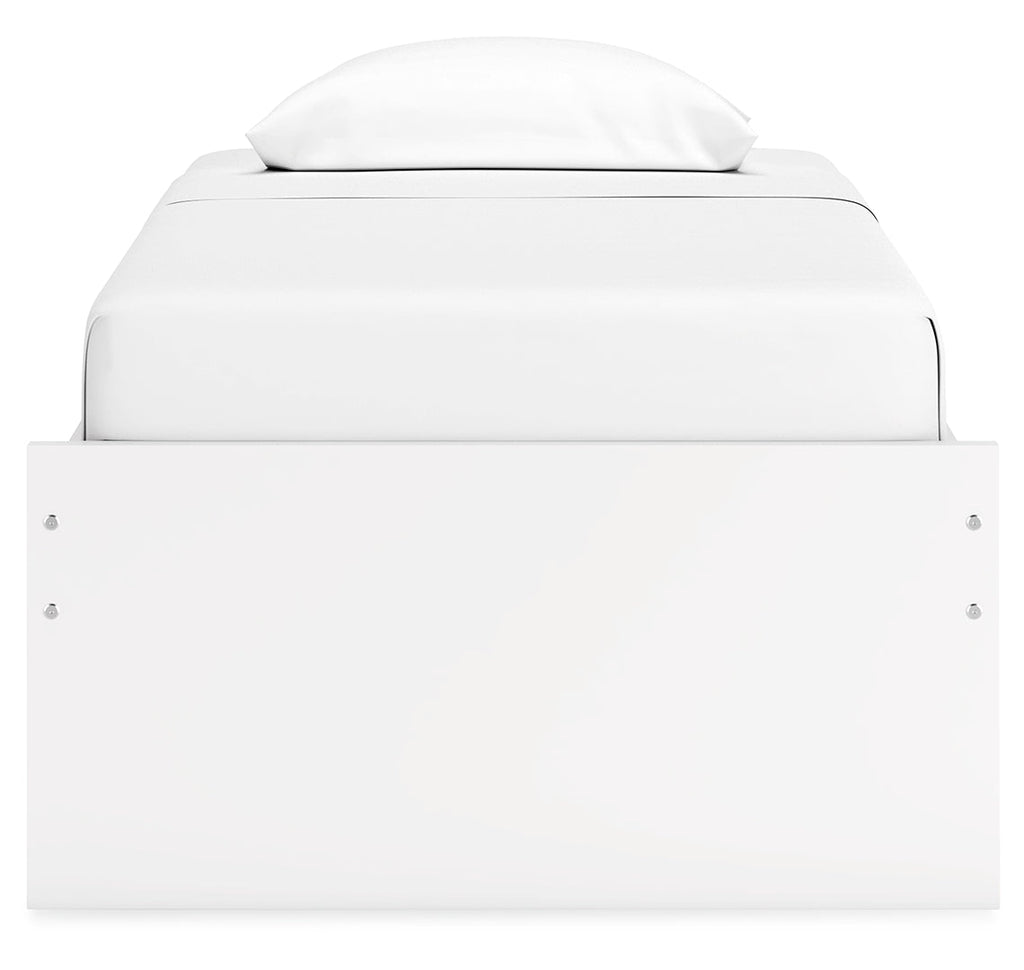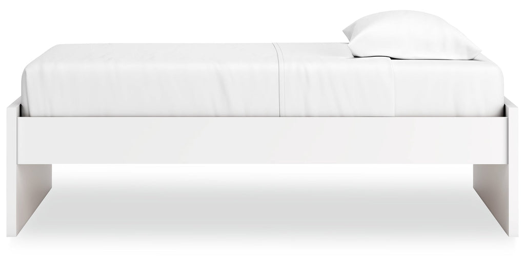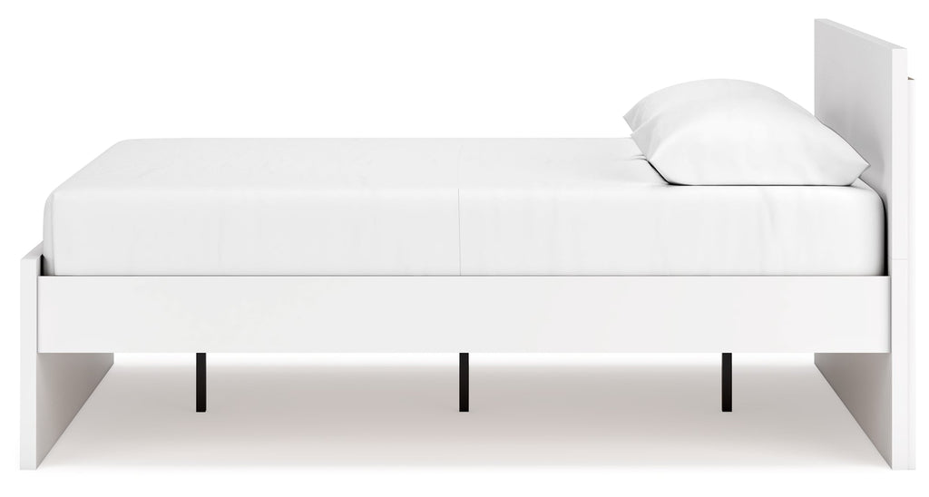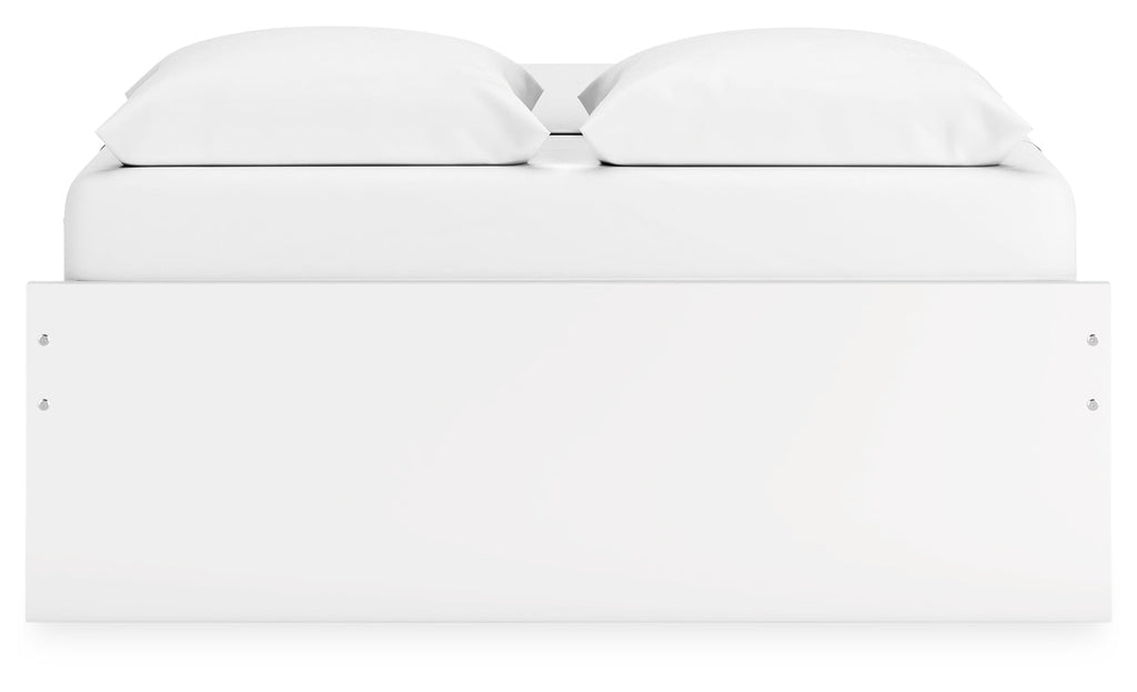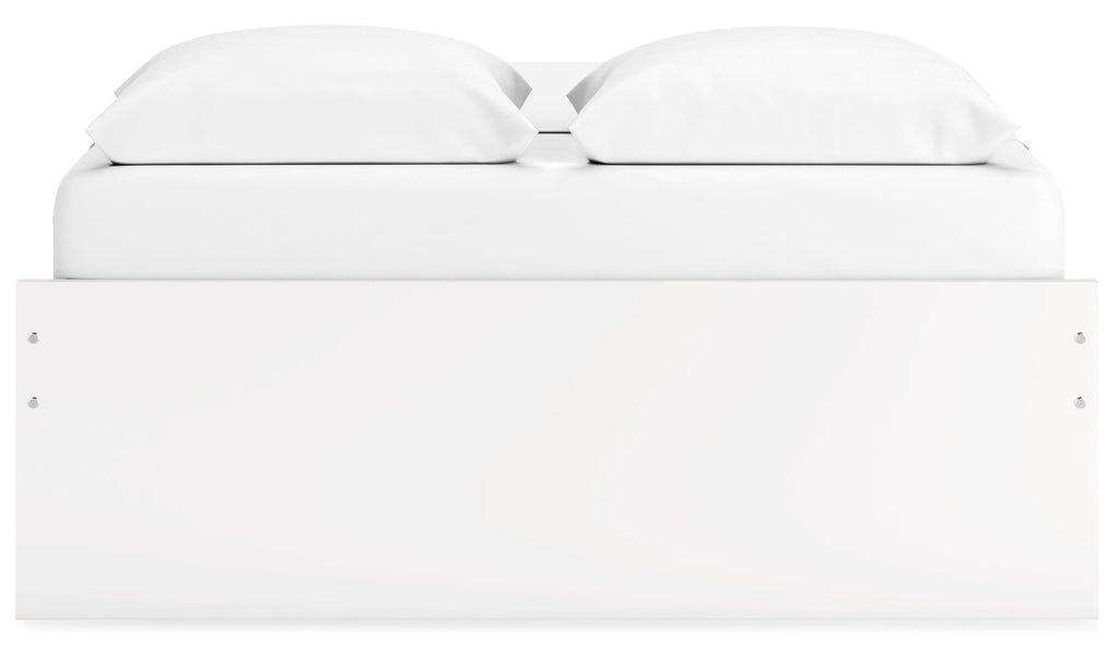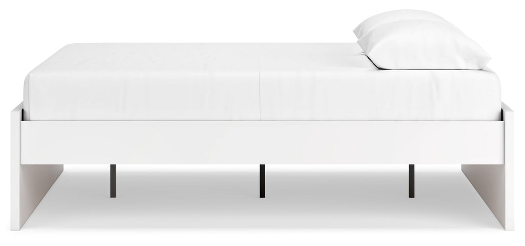 Create the modern bedroom of your dreams. This queen panel platform bed offers a minimal design with maximum style, combining ultra-clean lines and an easy-elegant solid white finish. Adjustable height settings make this a bed that has real staying power. There's no box spring or foundation needed, so you can splurge on a mattress that's sure to carry you away to a soothing place.