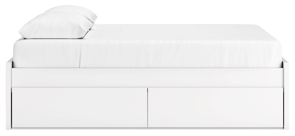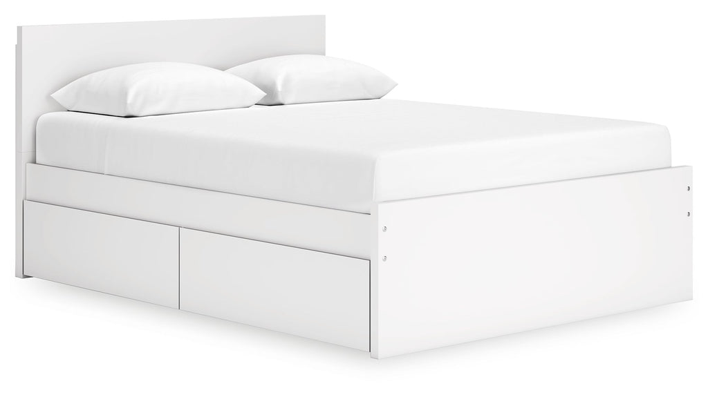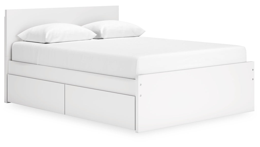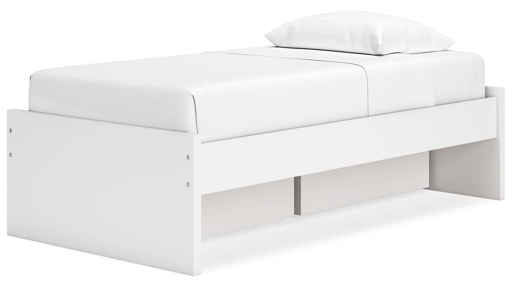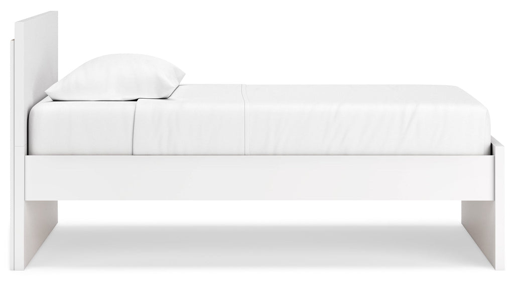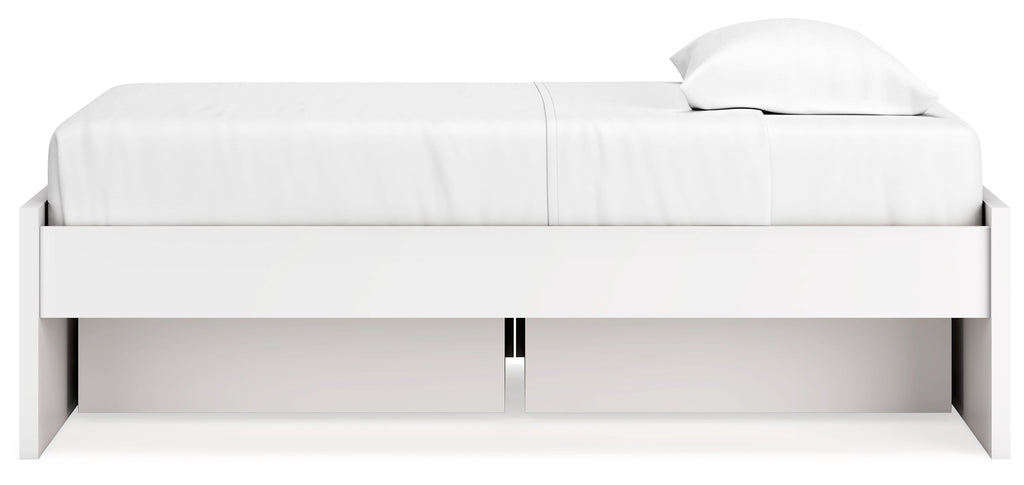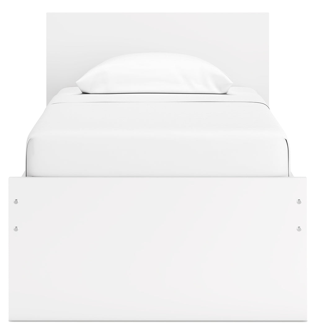 Create the modern bedroom of your dreams. This queen panel platform bed offers a minimal design with maximum style, combining ultra-clean lines and an easy-elegant solid white finish. Adjustable height settings make this a bed that has real staying power. There's no box spring or foundation needed, so you can splurge on a mattress that's sure to carry you away to a soothing place.