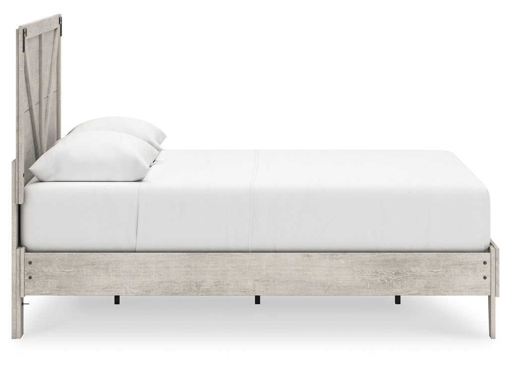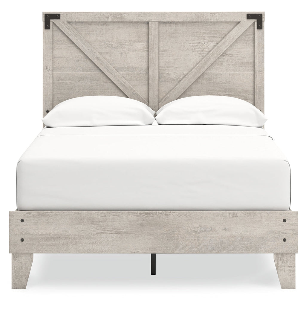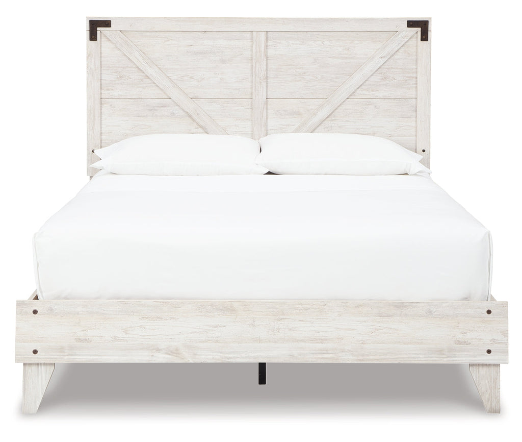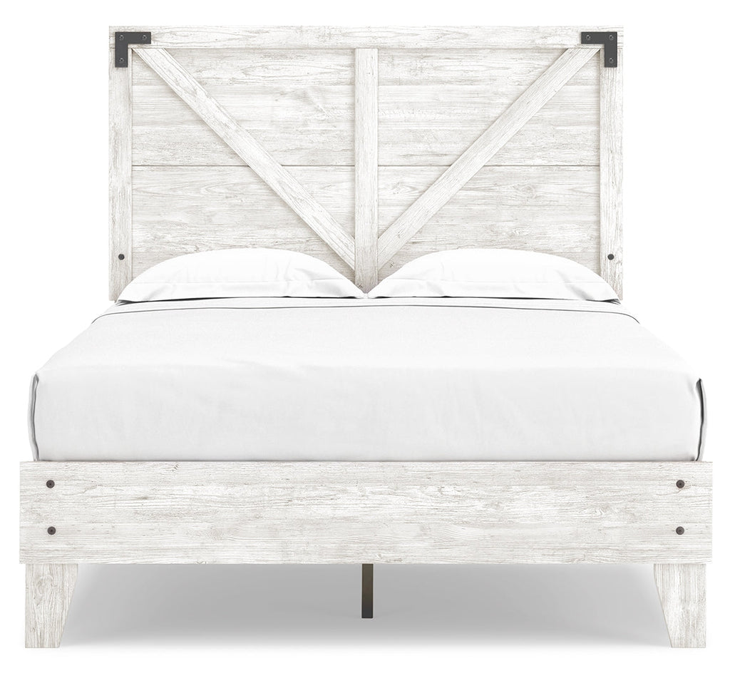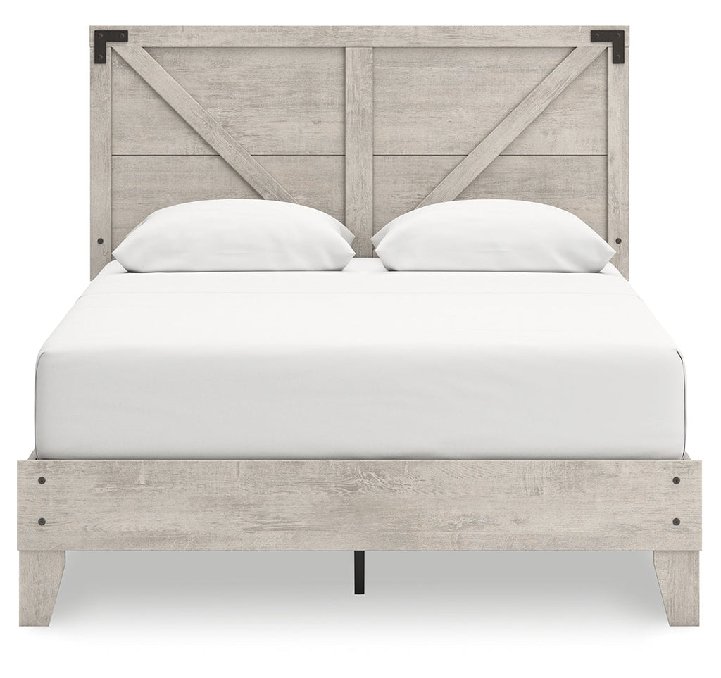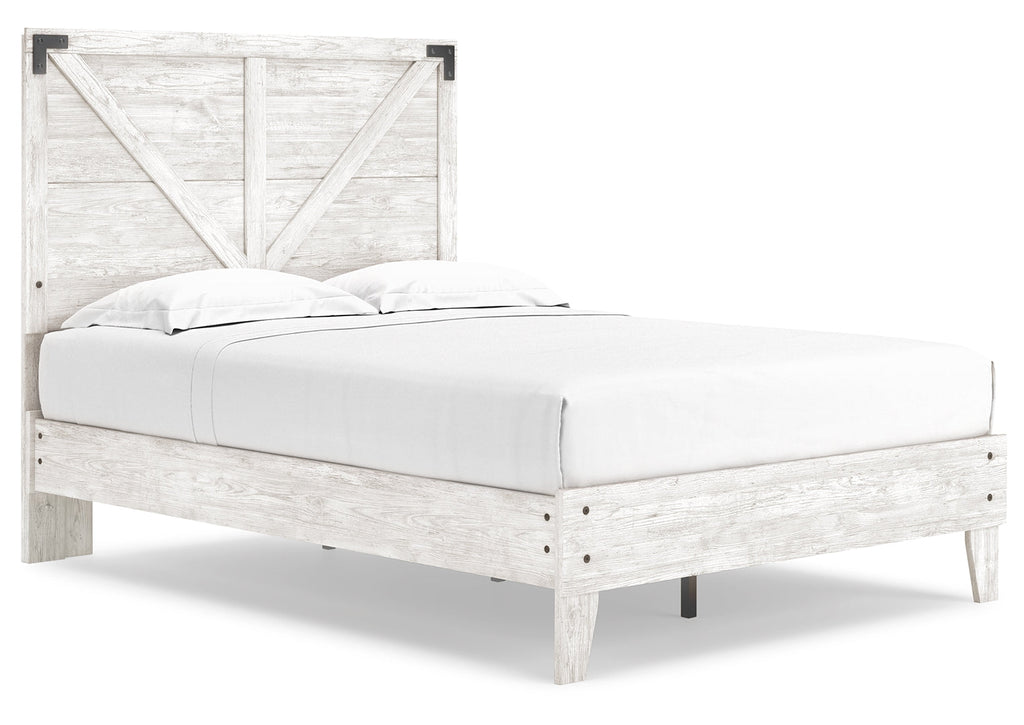 Give provincial a new meaning with the chic look of this full crossbuck panel platform bed. The worn whitewash distressed finish keeps this piece light and fresh while the warm pewter-tone hardware adds an industrial touch. The panel headboard with crossbuck detail adds a delightfully homespun charm to your space. Best of all, our innovative bed-in-a-box shipping system delivers your new bed right to the door.
