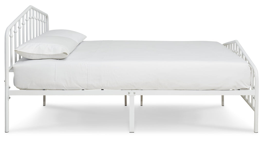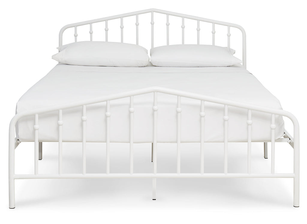 With a practical sense of beauty, this queen bed brings a subtle decorative element to your room with its white finish. Stylish spindles mounted on a gently arching top rail add visual interest without being too flashy. Bed setup is simple, with no additional foundation required.