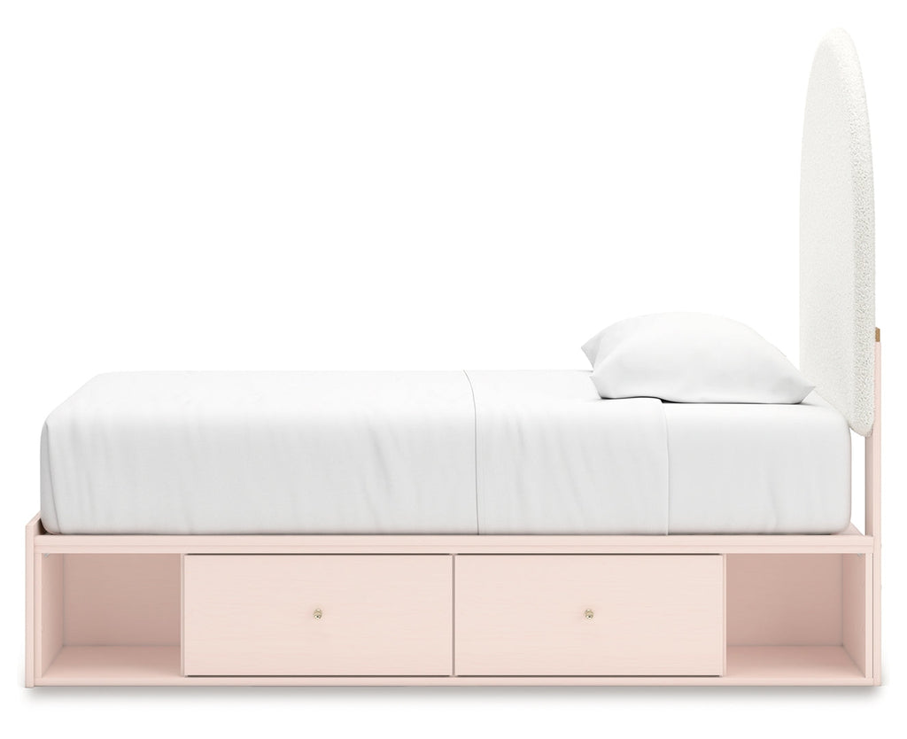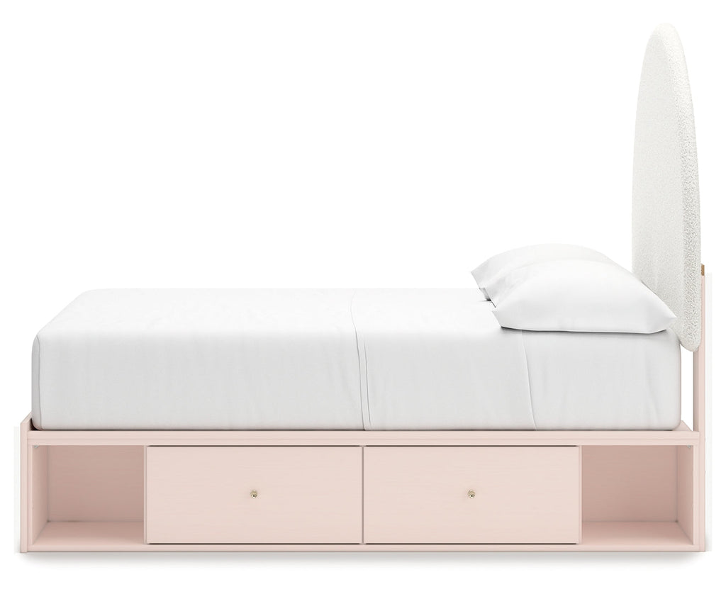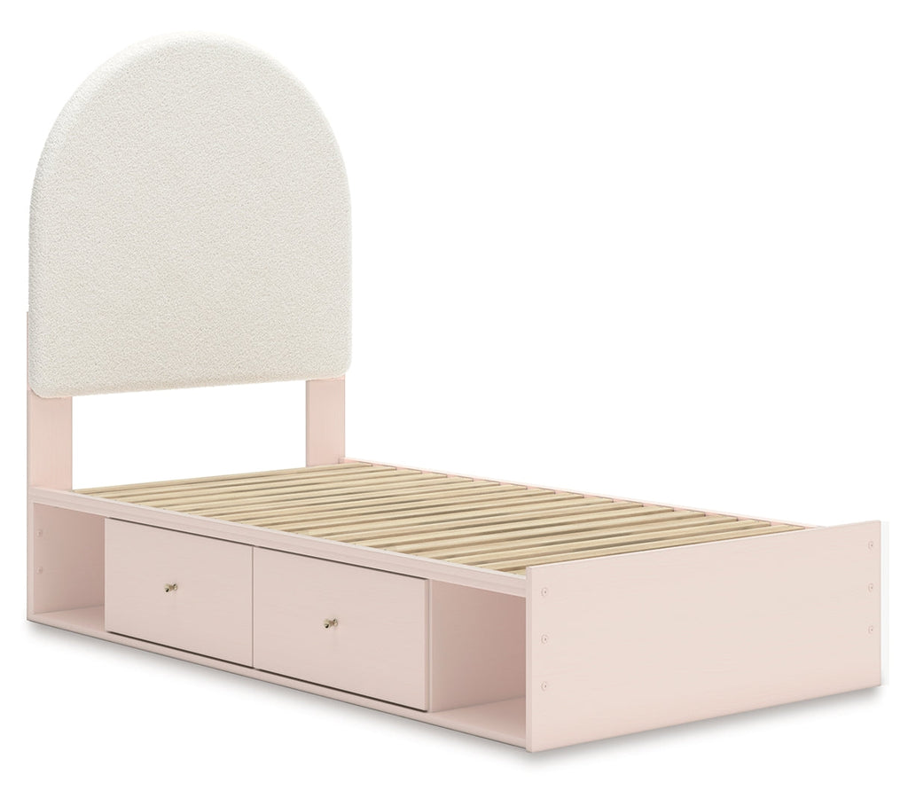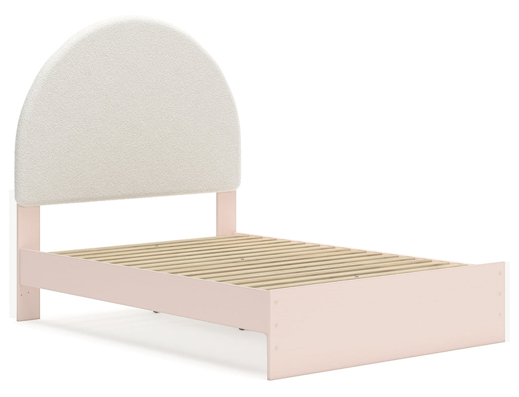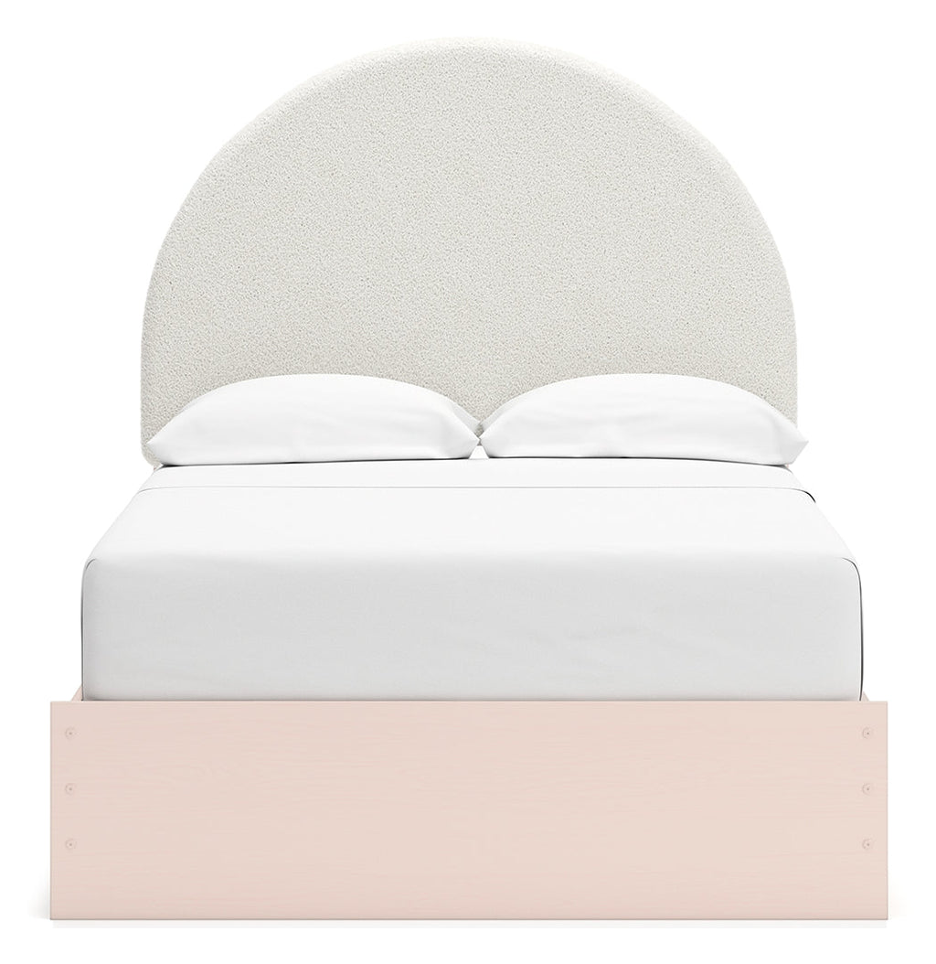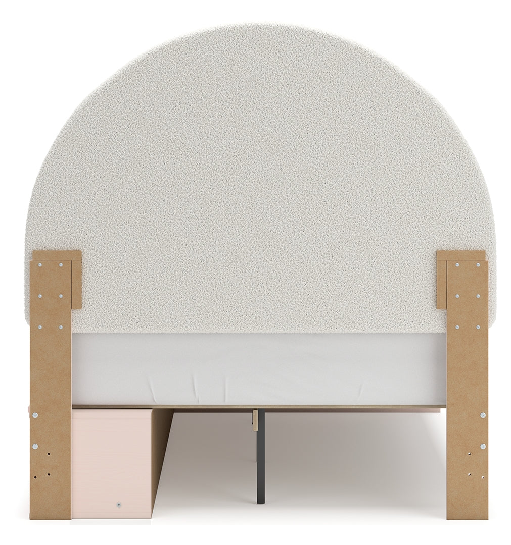 Pretty in pink. This full upholstered panel bed keeps the spirit of your home’s modern aesthetic while suiting all your young one’s needs. Its cozy-cute upholstery and subtle blush finish bring a playful, charming vibe to bedtime. Made for her and styled for you, it’s a lovely addition to a beautifully chic child’s bedroom.