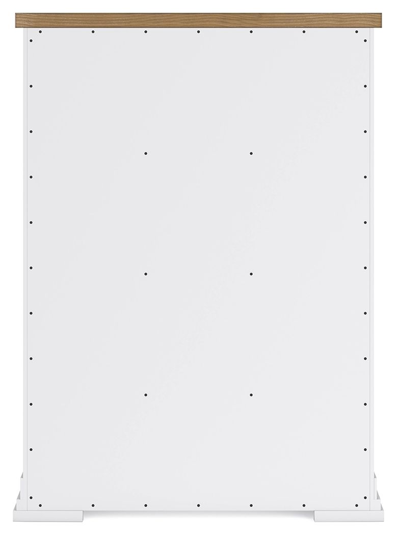 Casual style with substance. This two-tone chest of drawers raises the bar on comfortably cozy design in your soothing sanctuary. A sturdy silhouette with a classic white finish and black metal hardware exudes modern farmhouse vibes. The butcher block oak veneer top adds a relaxed aesthetic. And this charmingly curated piece is spacious enough for all your essentials.