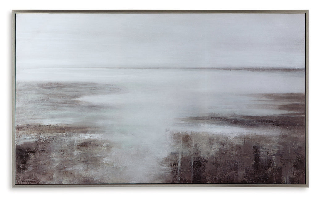 Coastal meets casual contemporary in this wall art. The piece recalls the placid movement of water, transforming shades of gray, taupe and white into a peaceful waterscape. Framed and ready to hang, it ushers a soothing seaside mood into your space.