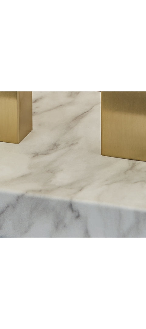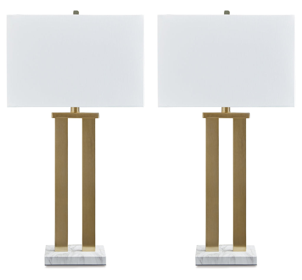 - Made of metal and faux marble with rectangular hardback fabric shade