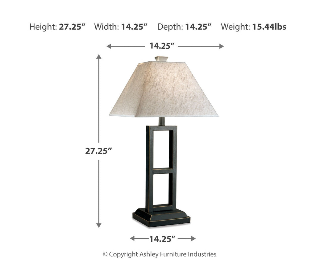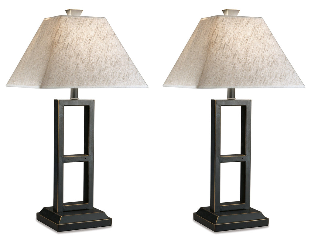 Open-ended style. This table lamp offers a strong linear design, with a rustic metal base softened by the textural waves of a chic linen-look shade. We love how the center cutouts keep these table lamps so light and airy.