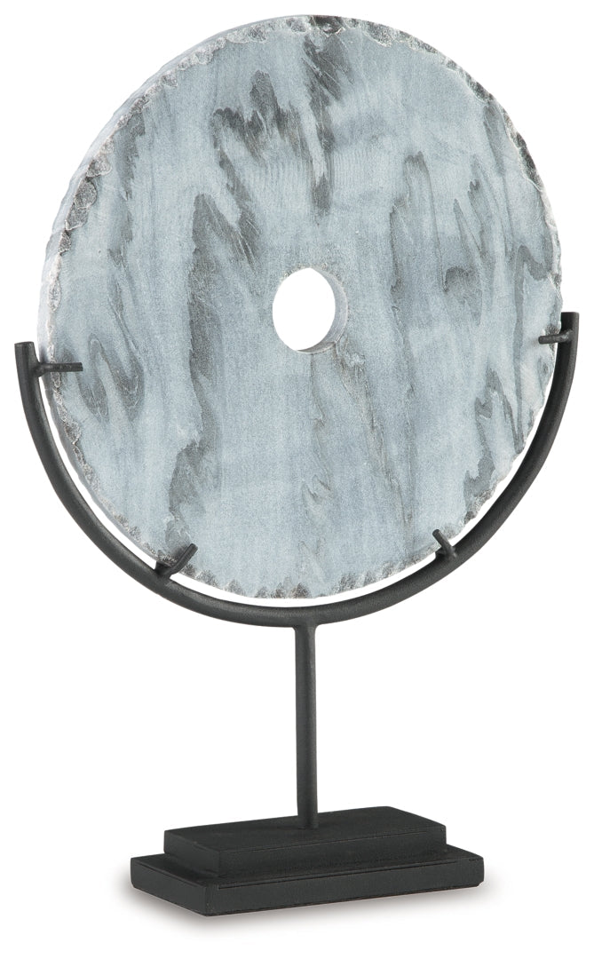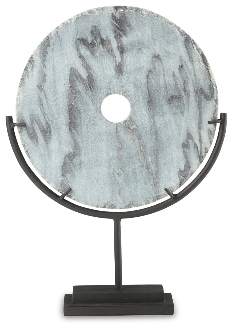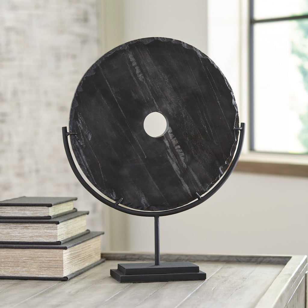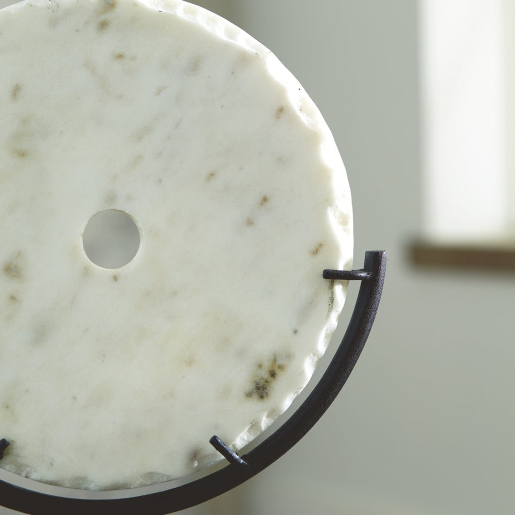 An upscale twist. Like something you’d see in a trendy contemporary art gallery, this gray marble disc sculpture on a black metal stand is as elegant as it is eye-catching. What an especially striking entryway piece.