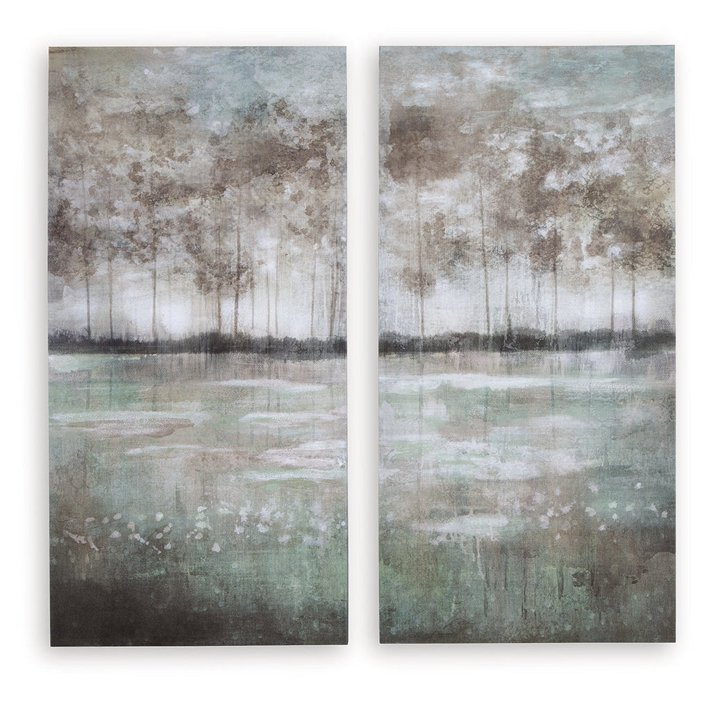 Evoking distant woodlands, this canvas wall art brings a sense of calmness and balance to a space. Textural brushstrokes add depth and visual interest to the abstract design, which lends itself to peaceful reflection.