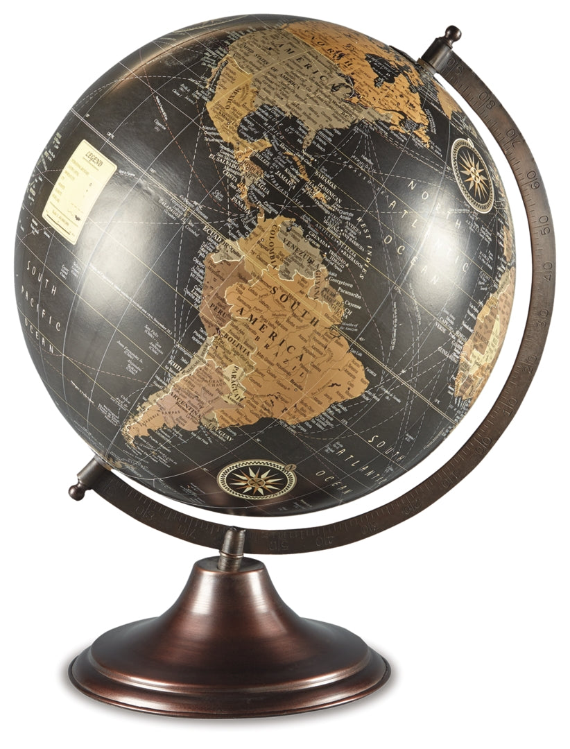 There’s something to be said for going “old school.” Sporting antiqued bronze-tone accents and rich, earthy hues, this metal globe sculpture brings home a touch of worldly sophistication that never goes out of style.