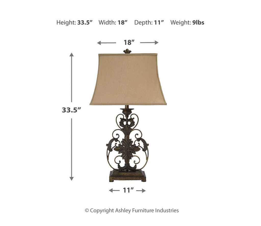 Twists and turns of metal and poly, adorned with a lovely timeworn crackle finish, bring a romantic and rather exotic feel to this striking table lamp. Its bell-shaped rectangular shade beautifully goes with the flow.