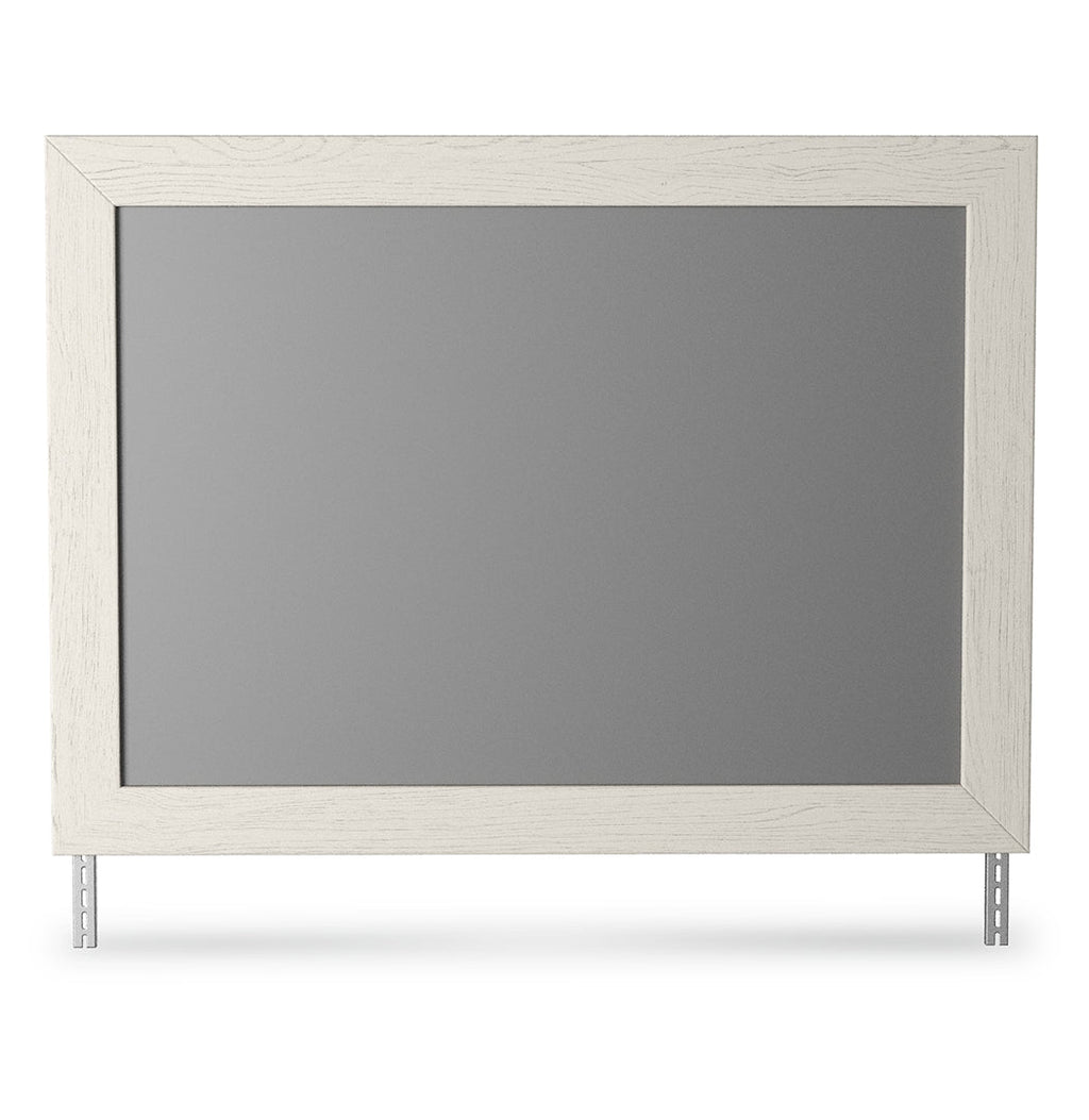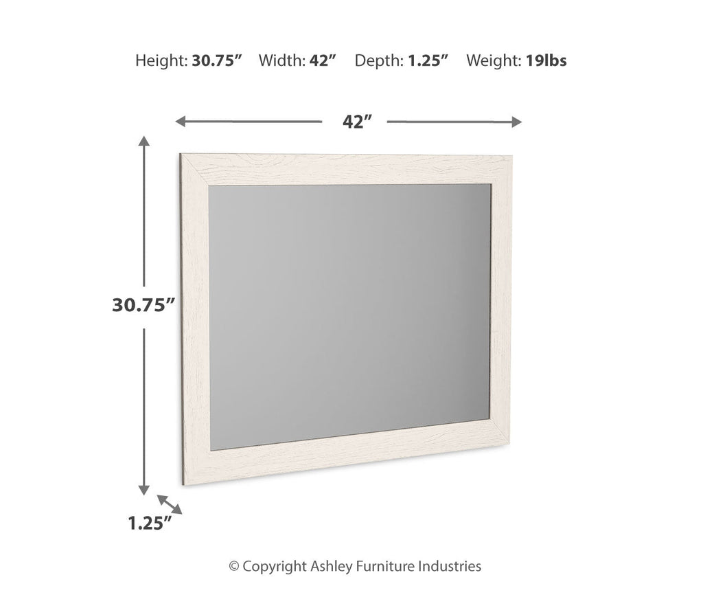 With its clean-lined look and modern attitude, this mirror is a fresh style awakening. A crisp, white hue over subtle replicated wood grain easily complements other furniture finishes. Whether hung vertically or horizontally, this alluring mirror is on the cutting edge of cool.