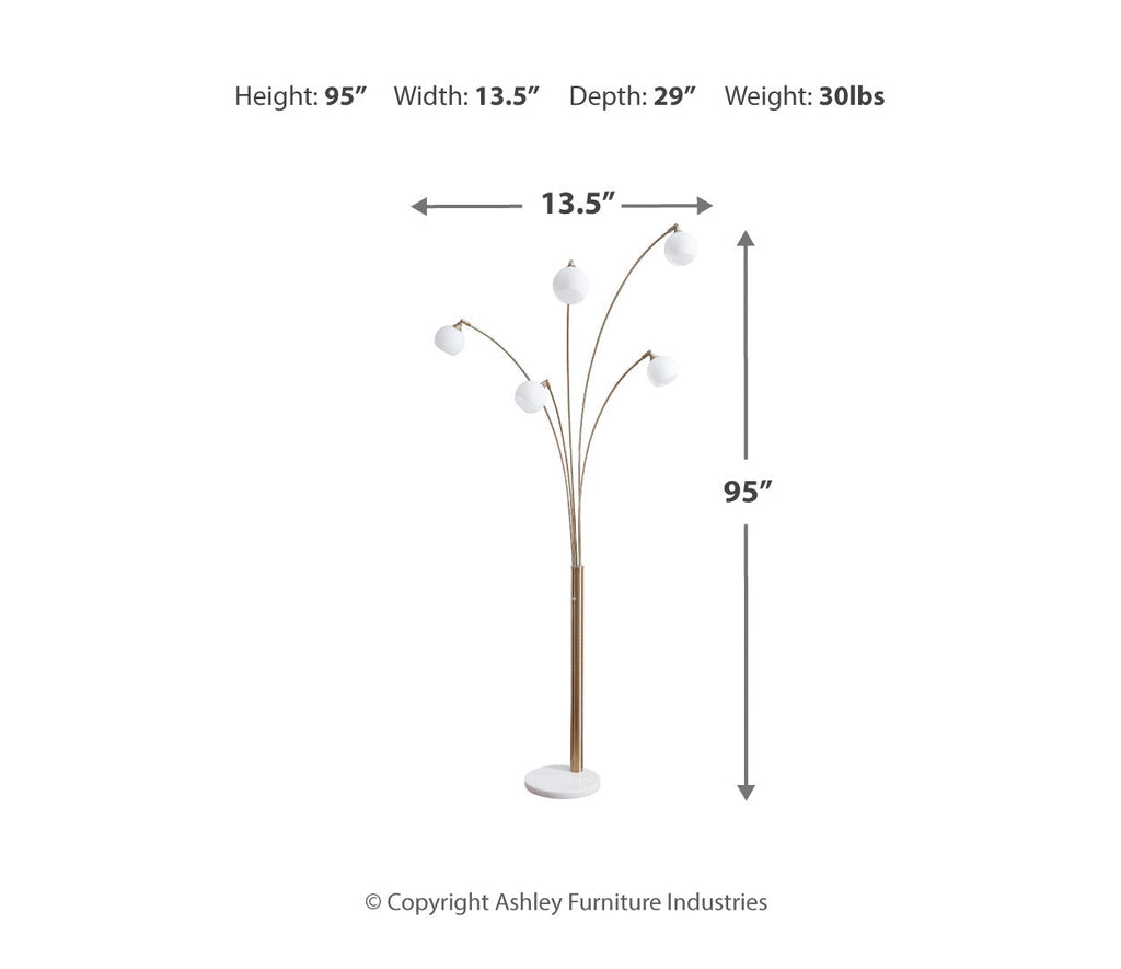 Why settle for ordinary? Feel free to bend the rules with this metal arc floor lamp. Equally sculptural and functional, this striking floor lamp wows with its champagne-colored metal and sturdy white marble construction. Five staggered-height lights with glass globe shades illuminate every which way.