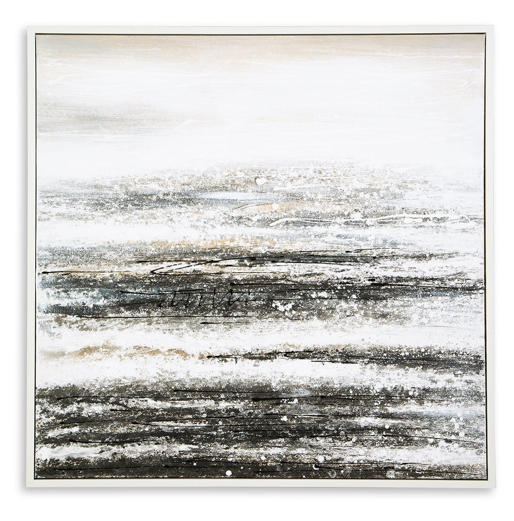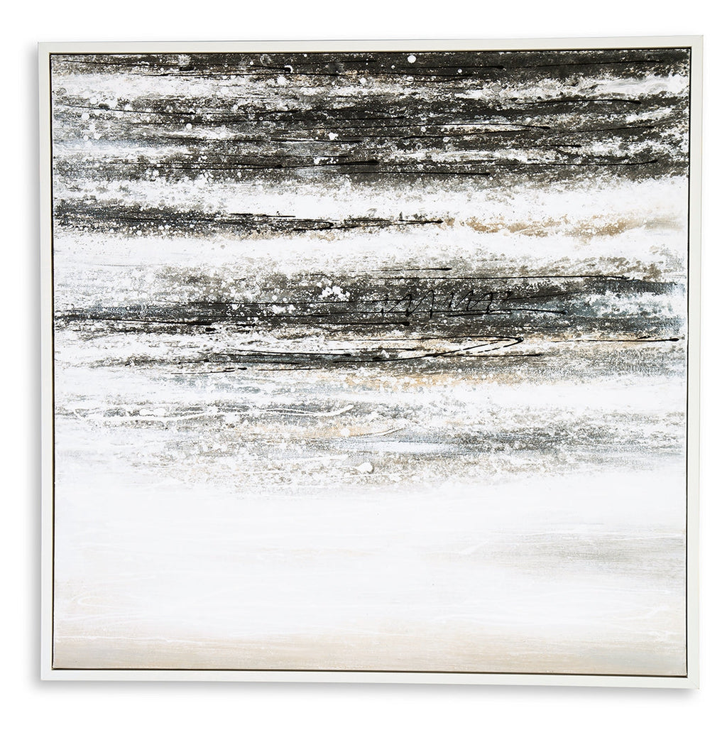Dive deeper into your modern aesthetic with this wall art. Abstract strokes of white, gray and navy convey the feeling of the sea in a storm. Creating a look that marries minimalism and bold style, this piece is a dynamic addition to your decor.