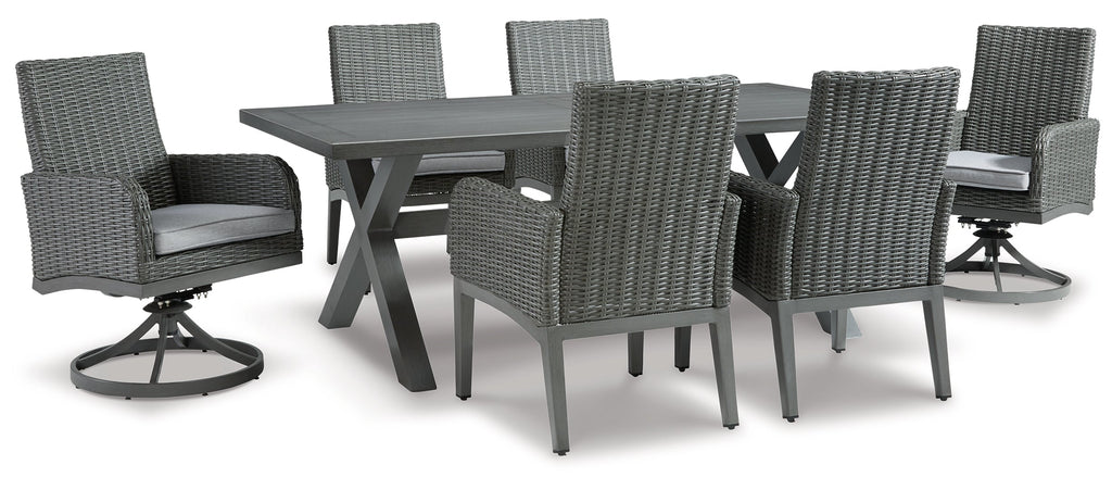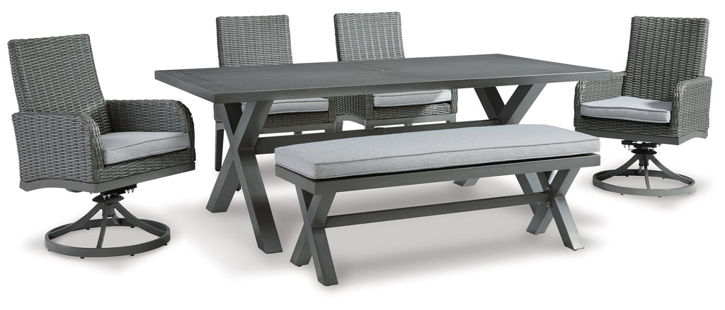 Add a distinguished touch of gray to your outdoor living space with this seating package. It's made with resin wicker over an aluminum frame for a relaxed look that provides seasons of enjoyment. Thick seat and back cushions are wrapped in Nuvella® high-performance fabric that’s fade-resistant, stain-resistant and a breeze to clean. Its aluminum top combines the exceptional durability and weather resistance you need with the "wood look" finish you love.