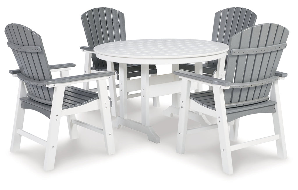 Gather friends and neighbors on the back deck or poolside to enjoy good times and make happy memories. Designed for easy-breezy living, this outdoor dining package is made to withstand harsh weather. The gray and white counter height set is made of durable HDPE material with stainless steel hardware and aluminum supports for extra strength. Raise a glass and make a toast to your comfortable outdoor lifestyle.