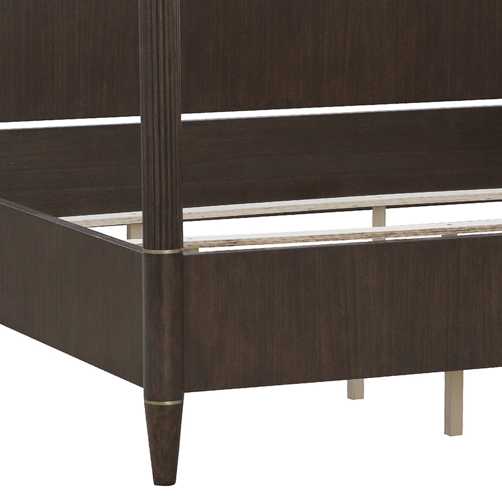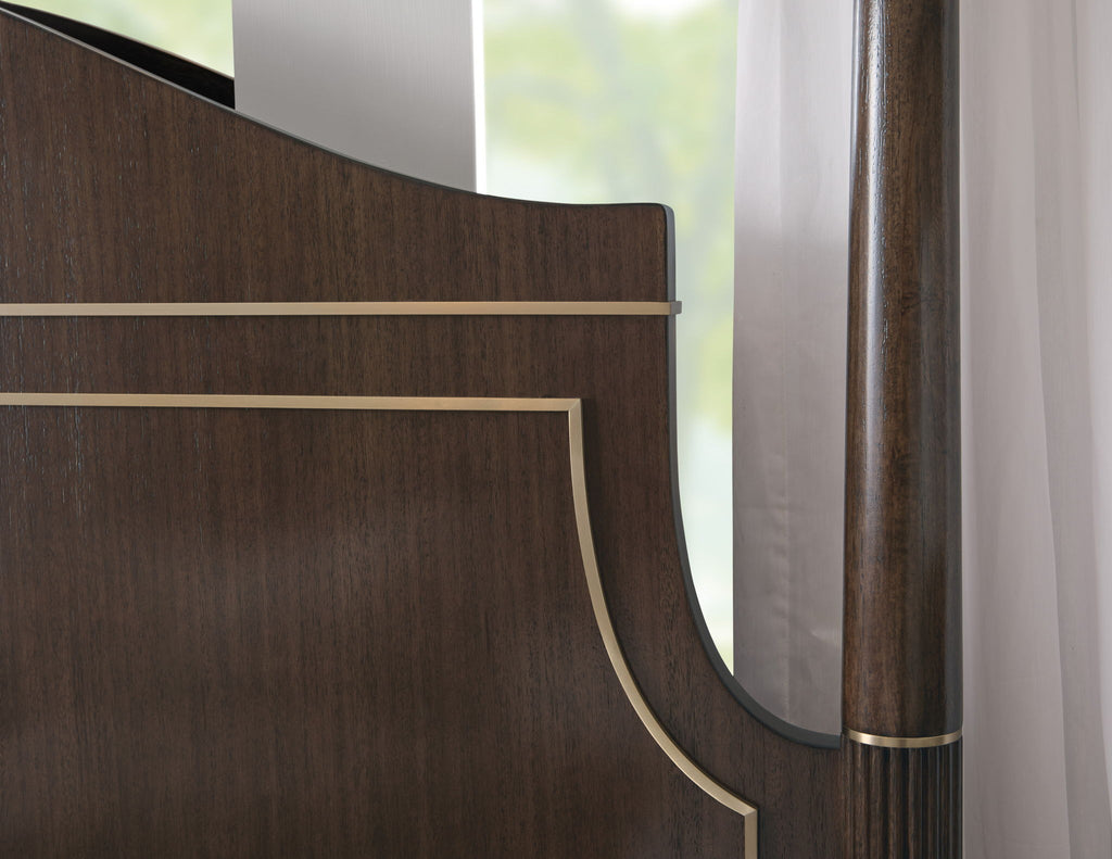 Make a bold, elegant statement with this Asher Park Poster Bed, blending timeless craftsmanship with refined architectural details. The soft, serpentine-shaped headboard creates graceful curvature and visual sophistication, while the footboard offers a high or low post option to suit your preferred aesthetic. Expertly crafted from eucalyptus veneers and finished in a rich, lustrous finish, the design is accented with metal trim throughout, adding a touch of classic luxury and heirloom appeal. This poster bed brings a grand yet tailored presence to any bedroom, offering the perfect balance of tradition and modern elegance.