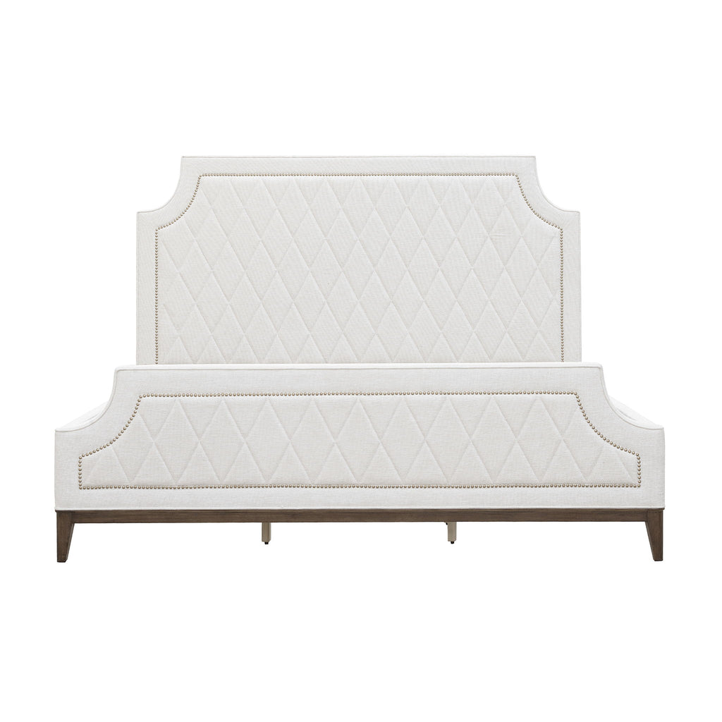 Bring timeless sophistication to the bedroom with Asher Park Upholstered Bed, showcasing a luxurious quilted diamond pattern for a soft, tailored look. A refined fabric is elevated with nailhead trim detailing, adding a touch of classic charm and artisanal craftsmanship. The bed is anchored by a rich wood base made from premium eucalyptus veneers in a deep finish, creating a warm, grounded aesthetic. Perfect for traditional and transitional interiors, this upholstered bed blends comfort, detail, and enduring style.